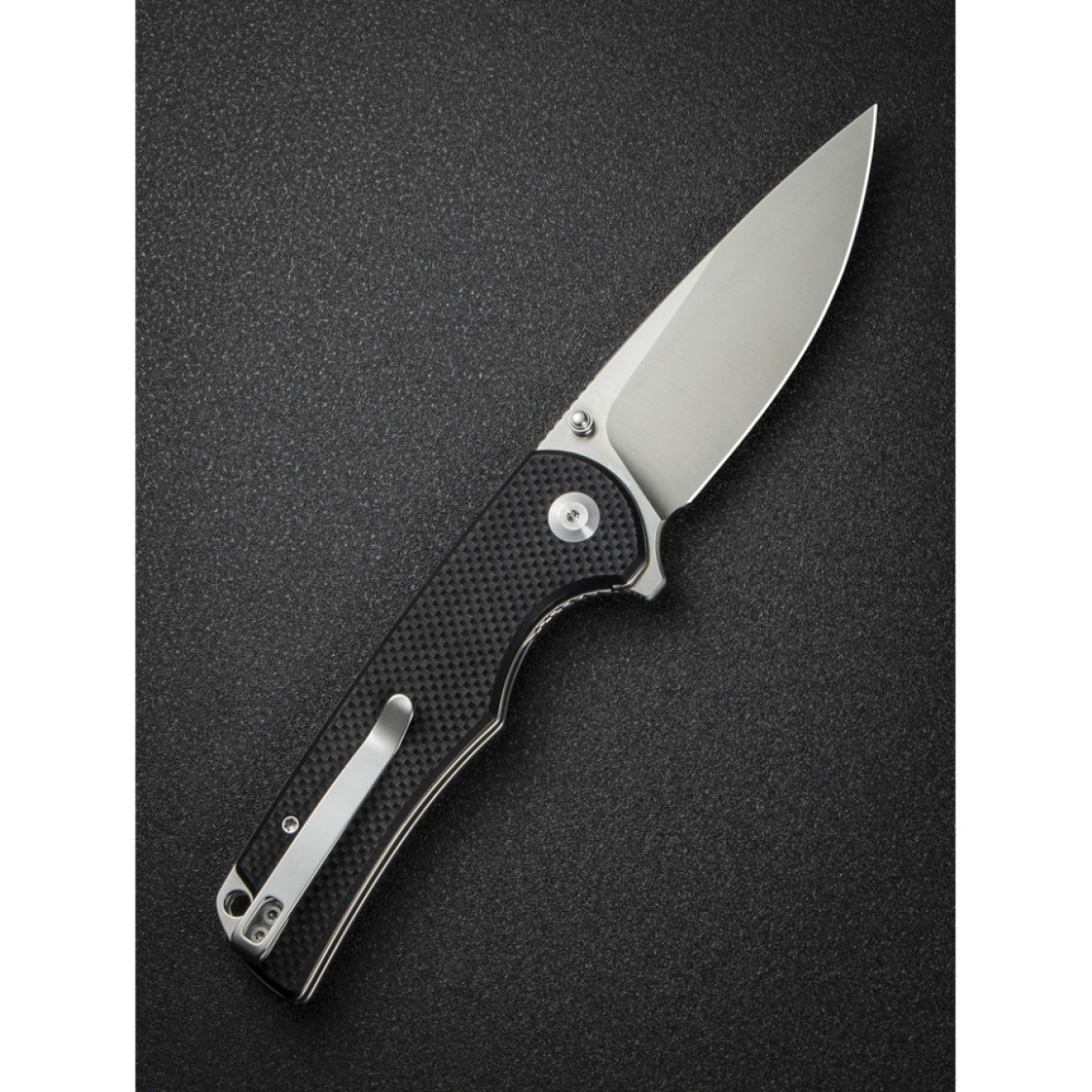 складаний ніж з двопозиційним сталевим затискачем на кишеню;
