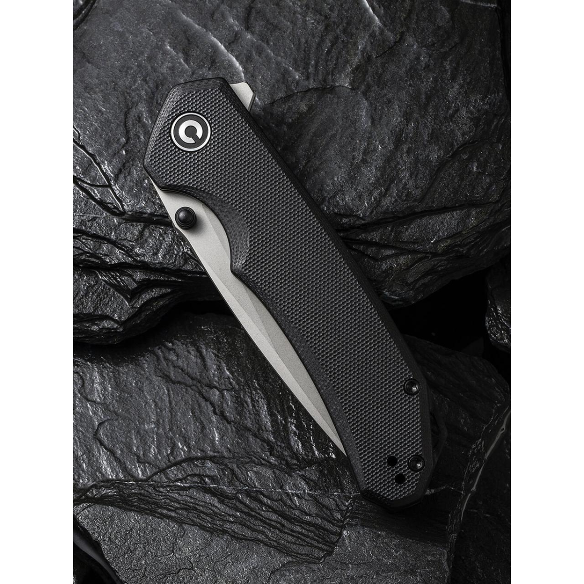 Рукоятка моделі зроблена із застосуванням склотекстоліту G10. Міцний та легкий матеріал із скловолокна та синтетичної смоли. Легка текстура чудово лежить у руці та забезпечує достатнє захоплення. Ніж має кліпсу, за допомогою якої легко закріпити на рюкзаку, сумці, підвісити до кишені або на поясі.