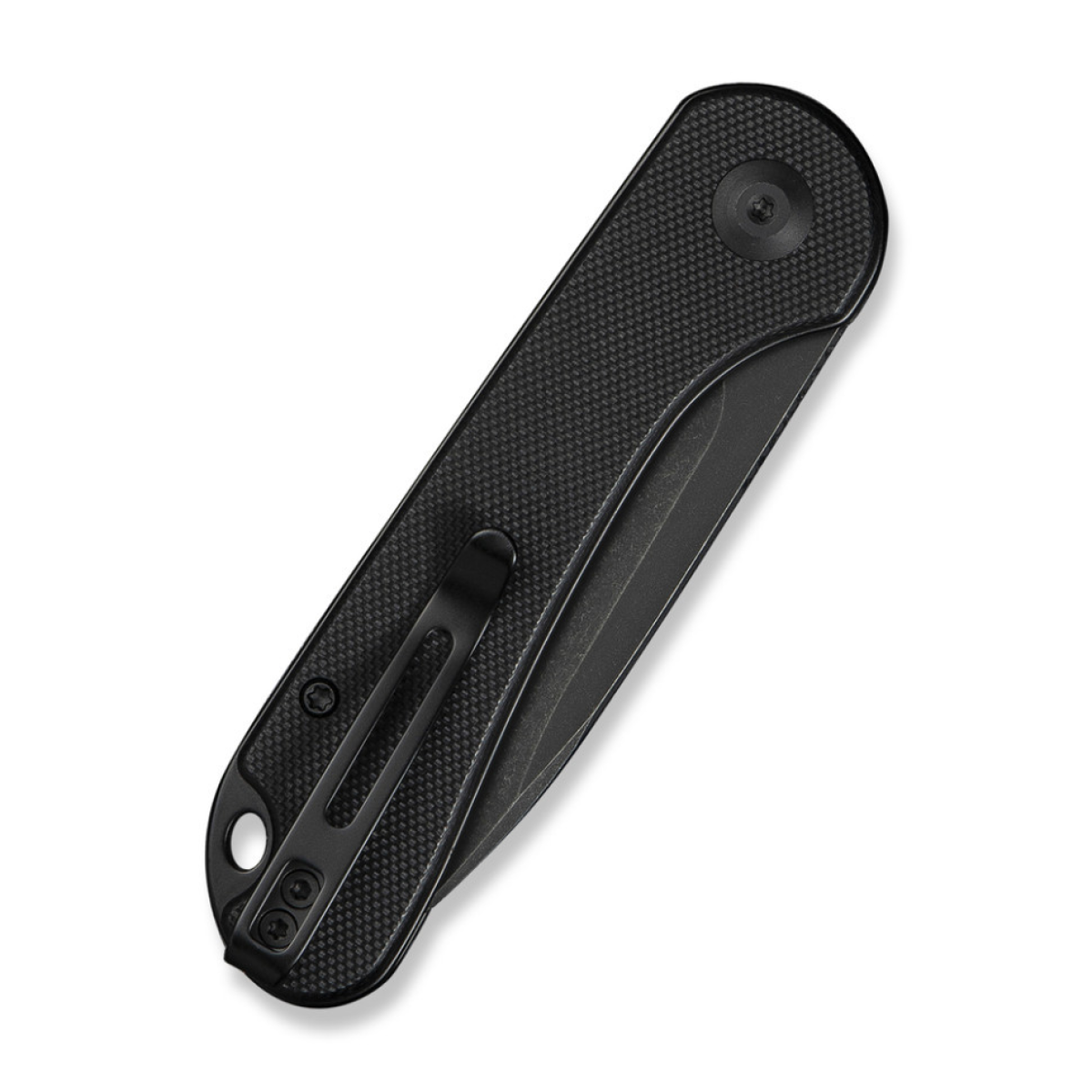 На руківʼї закріплена сталева кліпса з чорним покриттям, яка органічно доповнює загальний дизайн конструкції. Затискач підтримує встановлення з будь-якого боку руківʼя. У хвості є широкий отвір для темляка, що розширює можливості кастомізації.