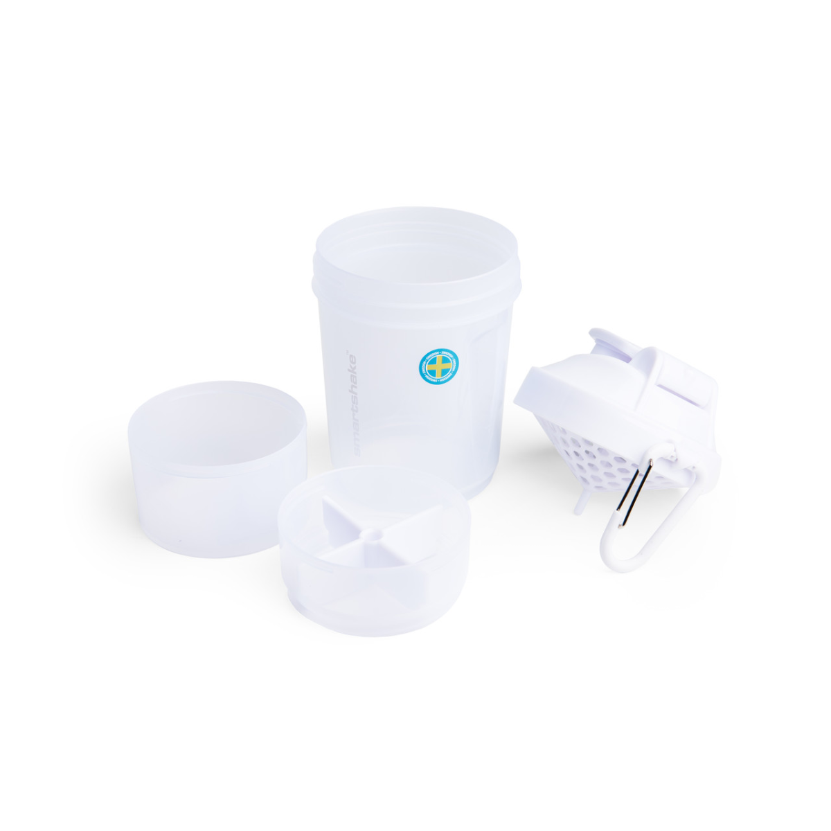 Оригінальний шейкер Smartshake розроблений для використання у тренажерному залі та у повсякденному житті. Він оснащений карабіном для ключа від гардеробної шафки або для пристібання клубної картки. Складається з трьох окремих відсіків. Стильний та ергономічний шейкер виготовлено з врахуванням зручності, безпеки та екологічності. Сучасний дизайн гарантує максимально комфортне тримання під час приготування напою, пиття та носіння.