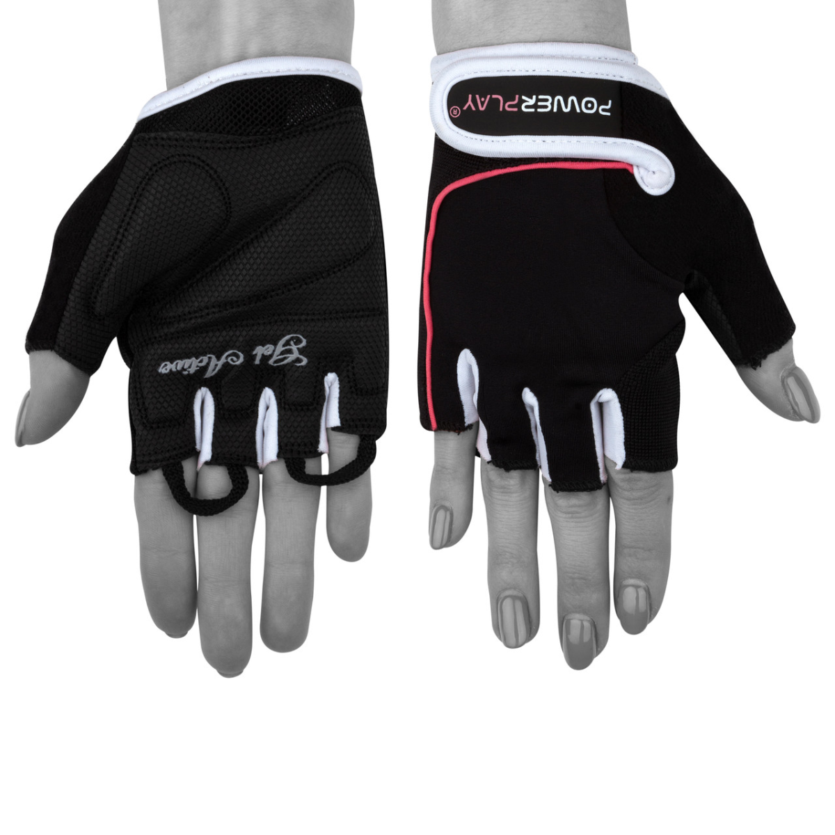 Рукавички для фітнесу PowerPlay 1750 жіночі Чорно-Рожеві XS
