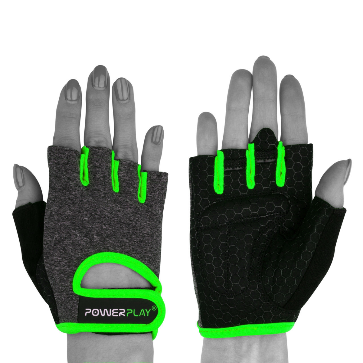 Рукавички для фітнесу PowerPlay 2935 жіночі Сіро-Зелені XS