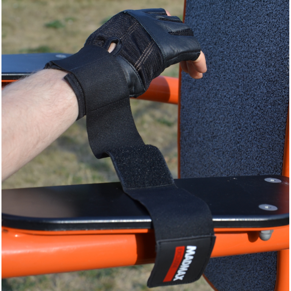 Рукавички призначені для фітнесу та силових тренувань. Він підходить для чоловіків і жінок з будь-яким рівнем продуктивності. Рукавички виготовлені з першокласної чорної шкіри з матовою поверхнею, яка використовується як збоку, так і з тильної сторони долоні. Для того, щоб під час тренувань руки не забруднилися, ця шкіра забезпечена спеціальним ламінуванням з внутрішньої сторони, яке абсолютно усуває цю неприємну особливість пофарбованої в чорний колір шкіри.