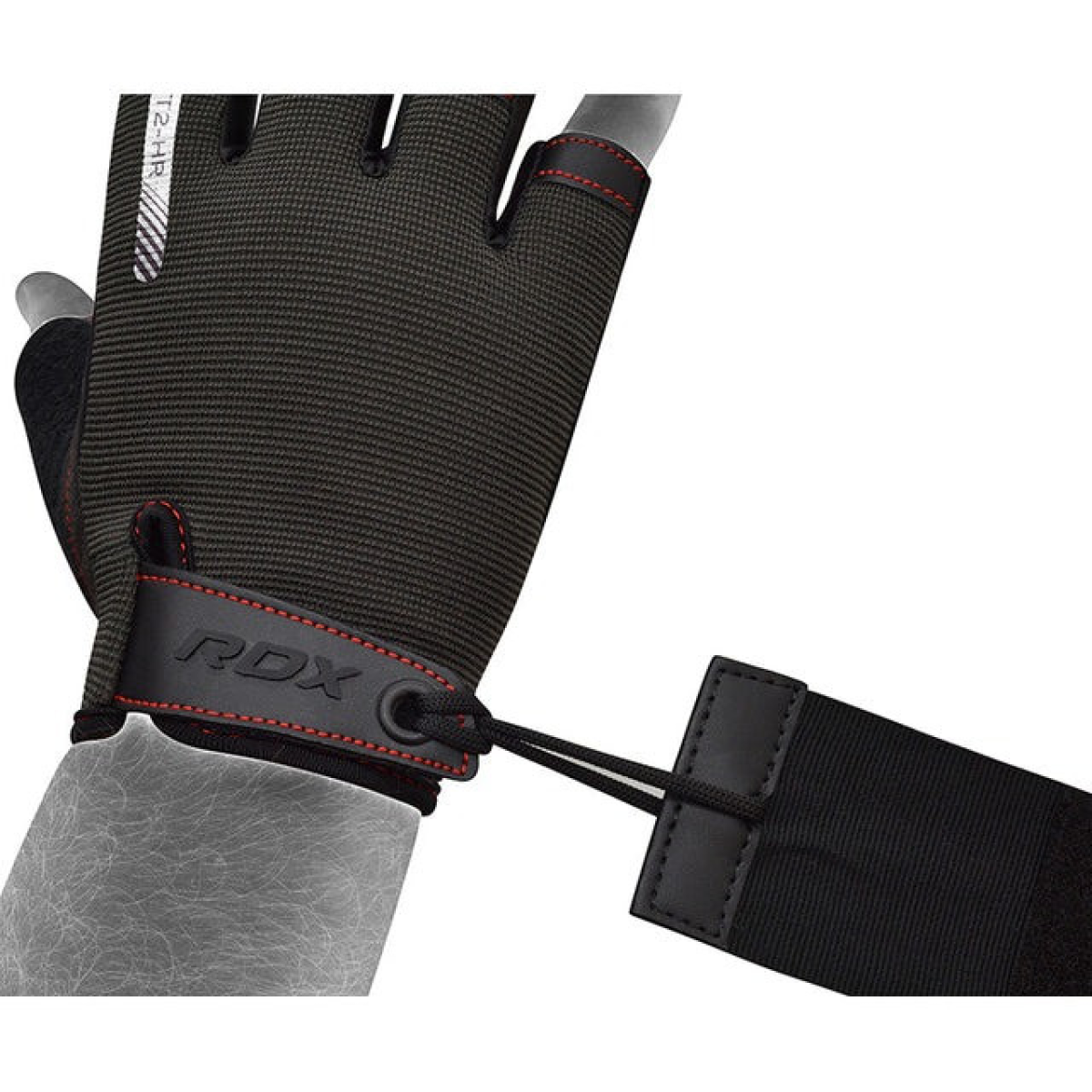 Рукавички для важкої атлетики RDX T2 на половину пальця з доданим ремінцем на зап’ясті для покращеної підтримки та захисту. Виготовлений з найтоншого еластичного матеріалу, який ідеально підходить до форми вашої руки. Силіконове руків“я з підкладкою з піни G забезпечує абсолютне зчеплення та захист долоні від тертя, яке спричиняє пухирі, не жертвуючи зчепленням під час важкої атлетики, станової тяги чи паверліфтингу. Основа для великого пальця виготовлена з мікрофібри з перфорацією для потоку повітря для запобігання потовиділення. Зручний, але гнучкий спандекс у внутрішніх частинах пальців обіймає руку, щоб ідеально відповідати своїй формі.