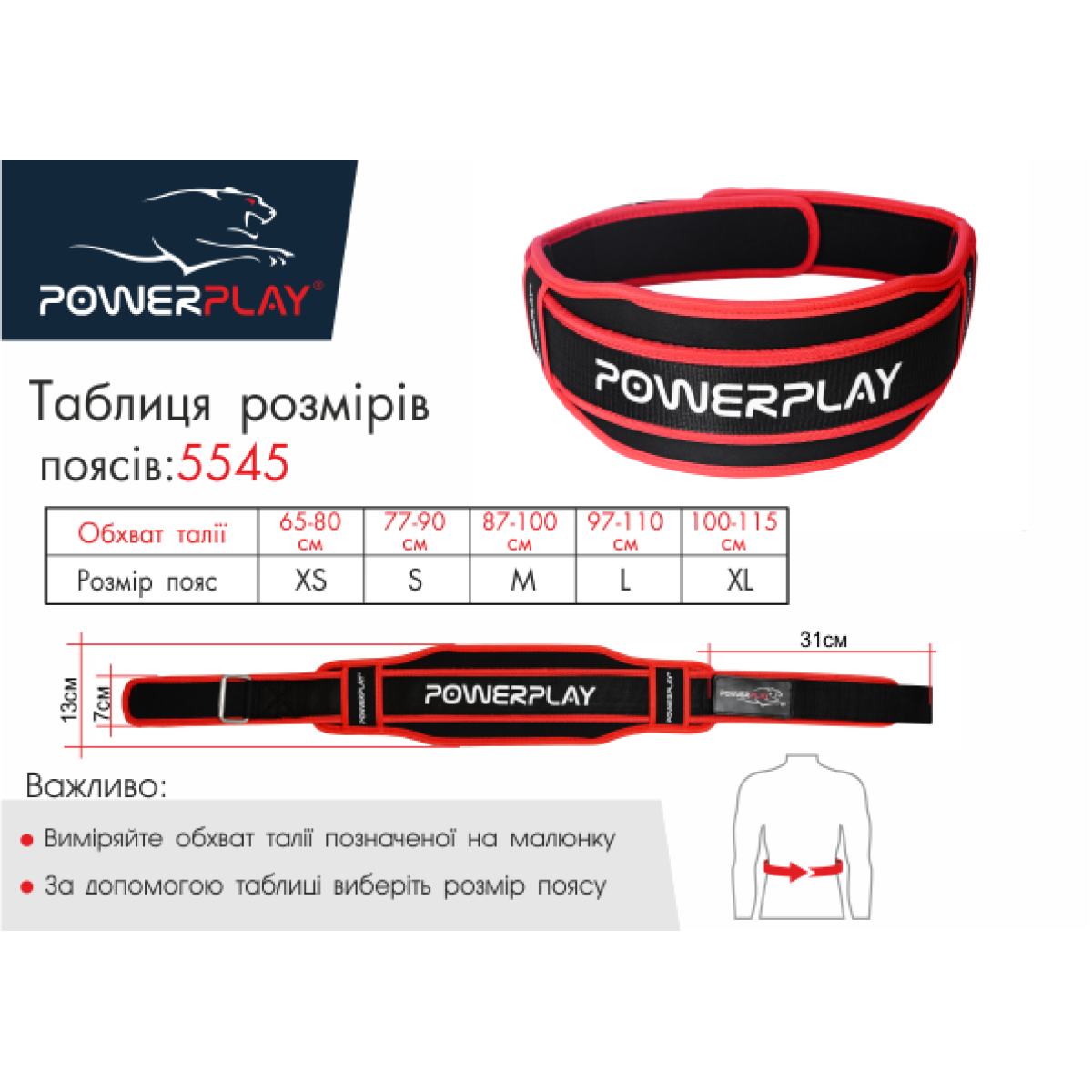 Пояс PowerPlay 5445 призначений для фітнесу і силових тренувань.