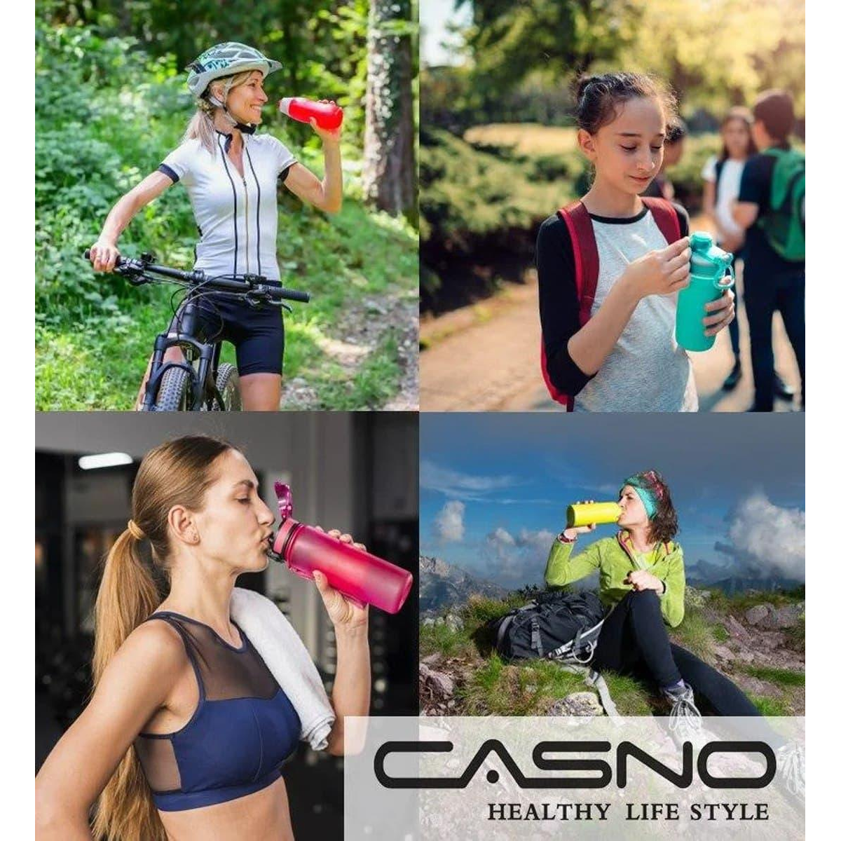 Пляшки бренду Casno допоможуть вам стежити за вашим водним балансом, адже на кожній наявна мірка сітка. А це своєю чергою спрятиме досяганню будь-яких цілей у фітнесі, включаючи зниження ваги, контролю апетиту та загальному стану здоров“я. Як це працює? Просто відкрийте пляшку однією рукою, натиснувши на кнопку. Кришка надійно фіксується на 180 градусів, що робить її зручною, особливо в дорозі. Засувка надійно фіксує від раптового відкривання. Щільне прилягання кришки надійно захищає від протікання. Ремінець дозволяє зафіксувати пляшку на руці або на рюкзаку, а також швидко виймати з сумки або велотримача. Спеціальний не ковзкий, світловідштовхувальний матовий матеріал корпусу soft touch приємний на дотик, стійкий до пошкоджень. Пляшку зручно тримати в руці. Додаткова сіточка захищає отвір. Отвір достатня широкий, щоб використовувати пляшку як шейкер, змішувати напої, кидати всередину кубики льоду. Завдяки широкому горлечку пляшку легко чистить Casno – пляшка для води, виготовлена з якісного пластику TRITAN, вона не має стороннього запаху, зручна у використанні, не шкідлива для здоров“я. Вона ідеально підходить для піших прогулянок, їзди на велосипеді, для кемпінгу, трекінгу, бігу, йоги та будь-яких інших видів спорту вдома, у тренажерному залі та в офісі. Ця пляшка - ідеальний вибір для подарунка! Чудові якості матеріалу та неймовірний вибір кольорів не залишать байдужим жодного споживача! Мірна маркування і широке горло дозволяє використовувати пляшку як шейкер для спортивного харчування! Пляшки з матеріалу TRITAN від бренду Casno бувають прозорими та матовими, смороду не всотують запах і колір напою та абсолютно не шкідливі для здоров“я. Зауважимо, що за результатами останніх тестів вироби з TRITAN навіть після 2000 циклів не змінюють своїх властивостей та залишаються блискучими й прозорими! Сертифікація заводу, де виготовляють ці пляшки, допускає їхній продажу на найвимогливіших з точки зору безпеки ринках Європи і США! Пляшки бренду Casno пройшли гігіїнічний висновок на території України(№12.2-18.3/20534 від 08.09.20.) Для гарного здоров“я та самопочуття важливо випивати достатню кількість води. Пити її, просто коли виникає спрага, неправильно. Адже спрага свідчить про зневоднення організму, а його не варто допускати. Скільки ж треба випивати води? В середньому людина повинна випивати 6 склянок води в день. Для розрахунку індивідуальної норми можна скористатися простою формулою. Чоловіки: Вага тіла х 35 Жінки: Вага тіла х 31 Якщо ви активно займаєтесь спортом, також у спечу до цієї цифри варто додати ще пару склянок. Також збільшити кількість споживаної води потрібно вагітним і тим, хто годує груддю, має фізичне або розумове навантаження . Але і це ще не все. Якщо ви вживаєте каву або алкоголь – кожне горнятко чи келих треба компенсувати склянкою води, адже ці напої зневоднюють. Візьміть за правило носити з собою завжди пляшку води! Ще одне важливе правило: обов“язково випивайте склянку води зранку, одразу після того, як прокинетеся. За ніч організм зневоднюється і потребує рідини.