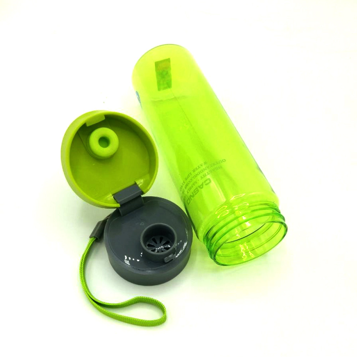 Пляшки бренду Casno допоможуть вам стежити за вашим водним балансом, адже на кожній наявна мірка сітка. А це своєю чергою спрятиме досяганню будь-яких цілей у фітнесі, включаючи зниження ваги, контролю апетиту та загальному стану здоров“я. Як це працює? Просто відкрийте пляшку однією рукою, натиснувши на кнопку. Кришка надійно фіксується на 180 градусів, що робить її зручною, особливо в дорозі. Засувка надійно фіксує від раптового відкривання. Щільне прилягання кришки надійно захищає від протікання. Ремінець дозволяє зафіксувати пляшку на руці або на рюкзаку, а також швидко виймати з сумки або велотримача. Спеціальний не ковзкий, світловідштовхувальний матовий матеріал корпусу soft touch приємний на дотик, стійкий до пошкоджень. Пляшку зручно тримати в руці. Отвір достатня широкий, щоб використовувати пляшку як шейкер, змішувати напої, кидати всередину кубики льоду. Завдяки широкому горлечку пляшку легко чистити. Casno – пляшка для води, виготовлена з якісного трипотанного поліефірного пластику, вона не має стороннього запаху, зручна у використанні, не шкідлива для здоров“я. Вона ідеально підходить для піших прогулянок, їзди на велосипеді, для кемпінгу, трекінгу, бігу, йоги та будь-яких інших видів спорту вдома, у тренажерному залі та в офісі. Ця пляшка - ідеальний вибір для подарунка! Чудові якості матеріалу та неймовірний вибір кольорів не залишать байдужим жодного споживача! Мірна маркування і широке горло дозволяє використовувати пляшку як шейкер для спортивного харчування! Пляшки з тритану від бренду Casno бувають прозорими та матовими, смороду не всотують запах і колір напою та абсолютно не шкідливі для здоров“я. Зауважимо, що за результатами останніх тестів вироби з тритану навіть після 2000 циклів не змінюють своїх властивостей та залишаються блискучими й прозорими! Сертифікація заводу, де виготовляють ці пляшки, допускає їхній продажу на найвимогливіших з точки зору безпеки ринках Європи і США!