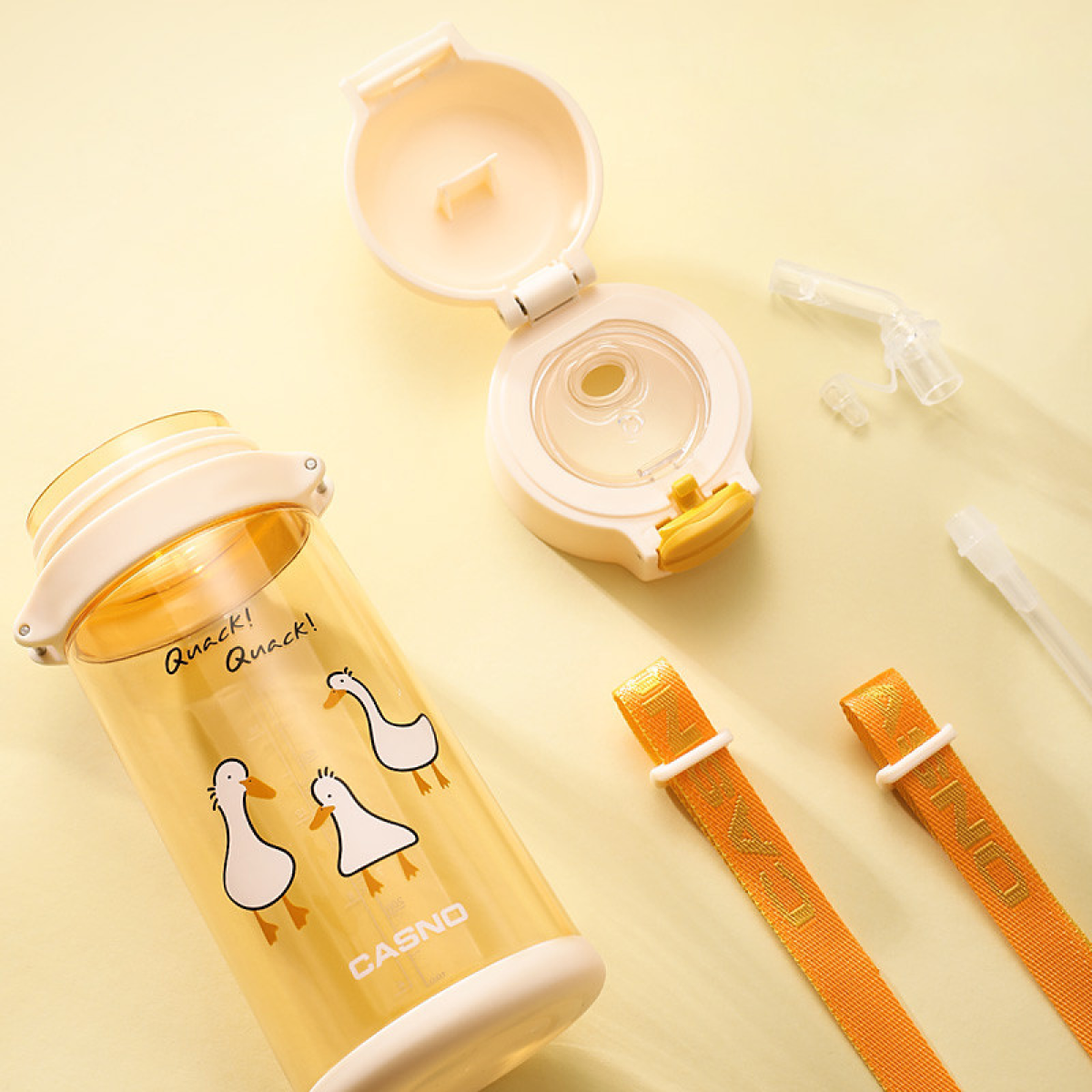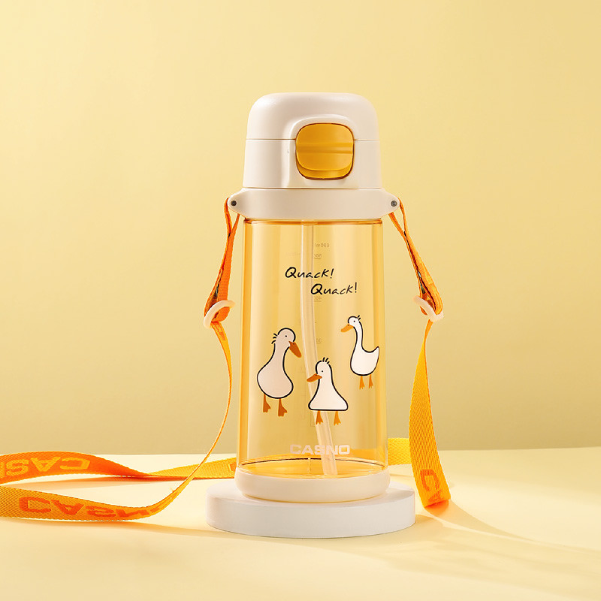 Пляшка для води CASNO 690 мл KXN-1219 Помаранчева (Гуси) з соломинкою
