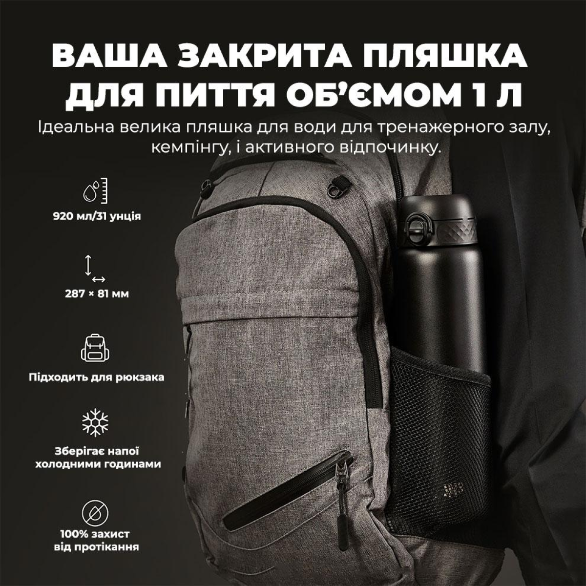 Пляшка для води металева вакуумна ION8 920 мл. Vacuum Insulated, Black