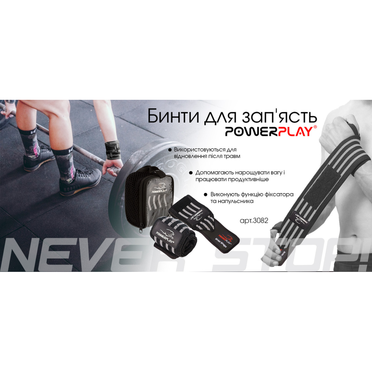 Бинти для зап“ясть PowerPlay 3082 використовуються у бодібілдингу та пауерліфтингу, при виконанні силових вправ.
