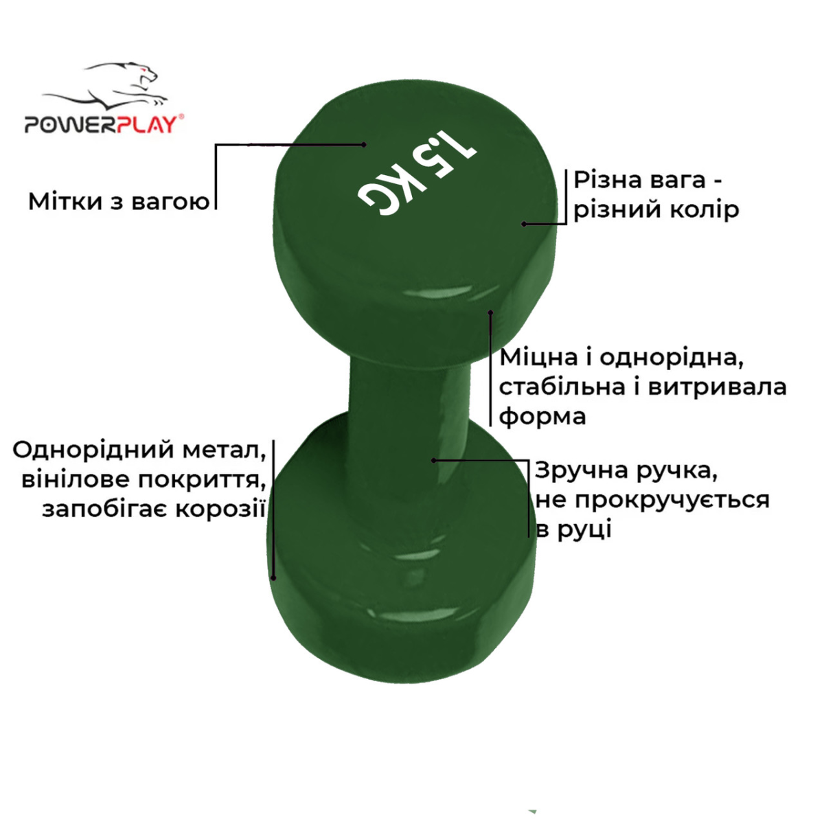 Гантель вінілова PowerPlay 4125 Achilles 2*1.5 кг. Зелені (2шт.)