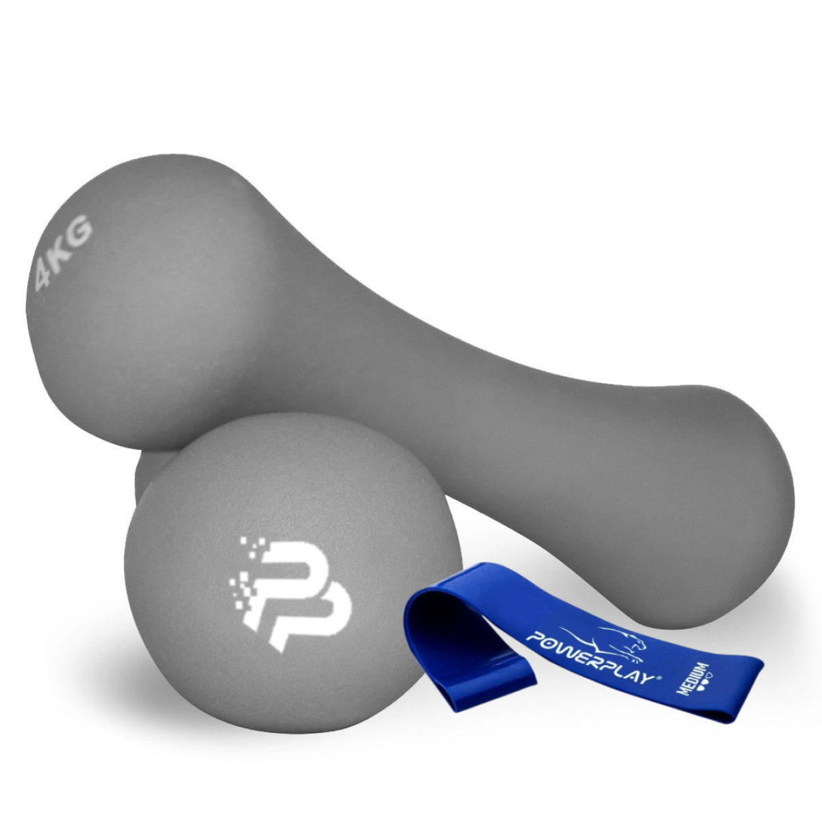 Призначення: Гантель для занять фітнесом вдома і в тренажерному залі. Комплект 2 шт. по 4 кг. Гумка для фітнесу PowerPlay 4114 Mini Power Band 0.8мм. Light Зелена (5.5 кг) - у подарунок Це просте обладнання, яке можна використовувати як вдома, так і в тренажерному залі. Завдяки гантелям PowerPlay ви зміцните і сформуєте м“язи рук, передпліч та грудей. Вінілові гантелі підходять для аеробних, силових і витривалих тренувань. Також їх часто використовують у реабілітаційних клініках. Гантелі також є простим способом привести ваше тіло в тонус. Тому цей вид техніки частіше вибирають дами. Невеликі гантелі, які використовуються під час вправ, дозволяють повністю зосередитися на техніці вправи. Використовуючи обважнювачі, ви швидко побачите ефект зміцнення, а ваш силует придбає новий вигляд. Опис: Гантелі ‒ незамінні снаряди для тренування м“язового каркаса людини. Ідеальний розігрів - наші гантелі чудово підходять для розминки та загальних вправ, щоб змусити ваші м’язи розігрітися. Чудово підходять для тренувань верхньої частини тіла, допомагають розвивати дельтоподібні, грудні м“язи, трицепси та біцепси. Гантелі також чудово підходять для збільшення витривалості. Використовуються в фітнесі, бодибілдингу, функціональному тренінгу (в тому числі CrossFit), лікувальній фізкультурі. Чудово підходить для інтенсивних тренувань, таких як ходьба, біг підтюпцем, аеробіка тощо. Сталева гантель із м“яким покриттям з неопрену для міцного, нековзного зчеплення. Цей вид гантелей забезпечує зручний, ергономічний захват, матеріал також поглинає вологу, що робить їх ідеальними для різноманітних вправ як у приміщенні, так і на відкритому повітрі. На відміну від звичайних гантелей, вони ідеально підходять для тренувань в домашніх умовах, оскільки не дряпають підлогу і мінімізують шум від зіткнення з нею. Поверхня гантелі надзвичайно зносостійка та легко миється. Також ці снаряди приємні на дотик, не холодні в долонях і виконані в яскравій колірній гамі. Гідний подарунок для всіх любителів фітнесу, від новачків до людей похилого віку. Гантелі PowerPlay можна використовувати під час роботи, силових тренувань, бойових мистецтв і навіть під час повсякденних справ. Ви самі вирішуєте, наскільки ви хочете втомитися і скільки триватиме тренування;). Гантелі підходять для розвитку динаміки, сили й витривалості, а також допомагають спалювати калорії. Гантель неопренова - це ідеальний інструмент, за допомогою якого можна тренувати та зміцнювати плечового поясу: плечей, передпліччя та грудей. Гантелі ідеально підходять для занять аеробікою, силових тренувань, розвитку витривалості, а також для реабілітації. Контурна форма і не антиковзальне покриття, делікатно структурована поверхня гарантують надійний і комфортний хват. Вага гантелей, зображена збоку виробу, полегшує їх ідентифікацію. Завдяки малим розмірам, гантелі PowerPlay надзвичайно прості для зберігання та транспортування - вони легко вмістяться у вашу сумку або рюкзак, тому ви можете взяти їх куди завгодно! Міцність і практичність Практичні гантелі PowerPlay поєднують естетичність з функціональністю. Вони виготовлені з високоякісного чавуну, покритого неопреновим шаром. Поверхня гантелей не вбирає піт і вологу, а відштовхує її, тому гантелі легко чистяться. Крім того, неопренове покриття мінімізує ризик подряпин підлоги під час 