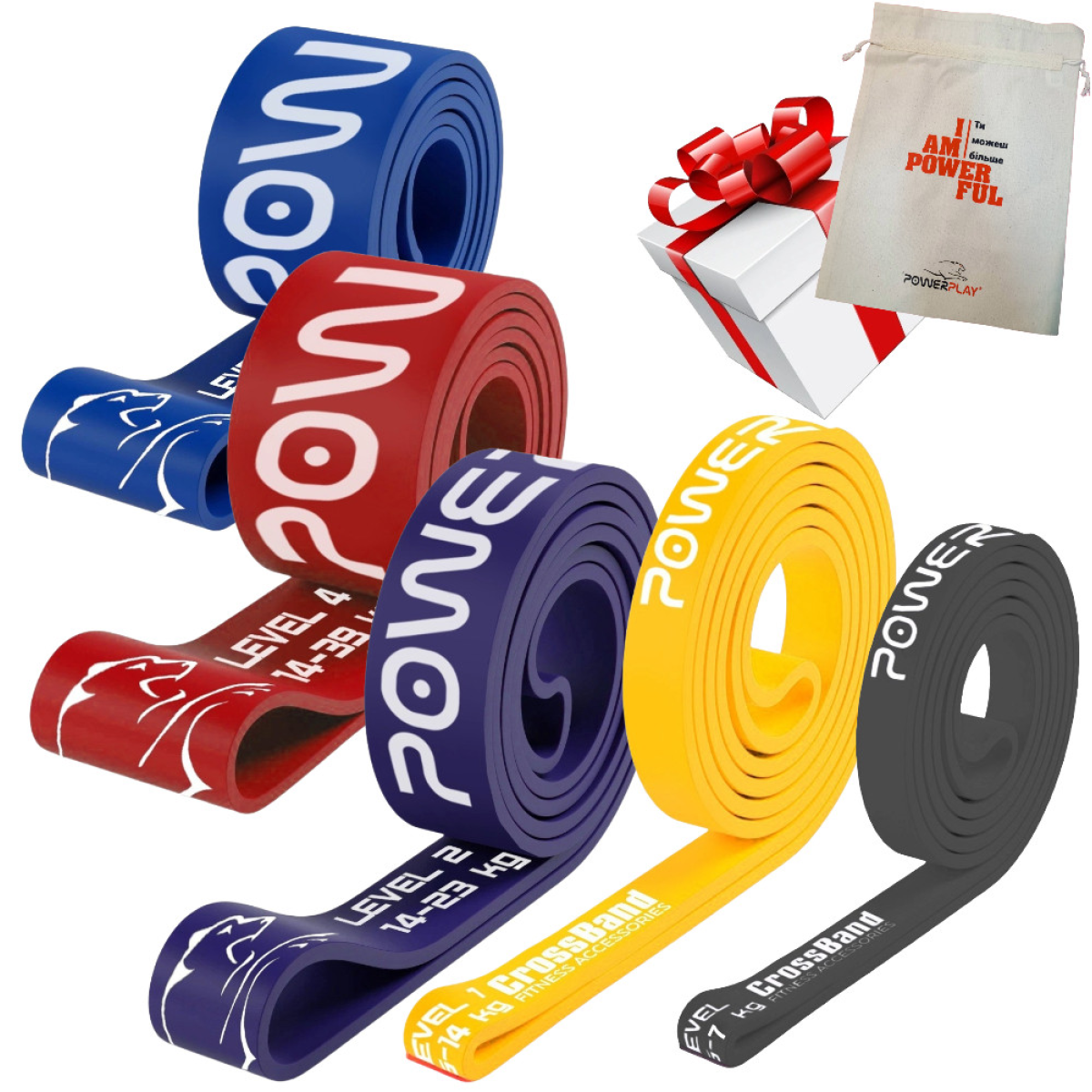 Еспандер-петля (гумка для фітнесу і кроссфіту) PowerPlay PP_0017 набір 5шт. опір 2-45кг. (сумарно 128кг.)