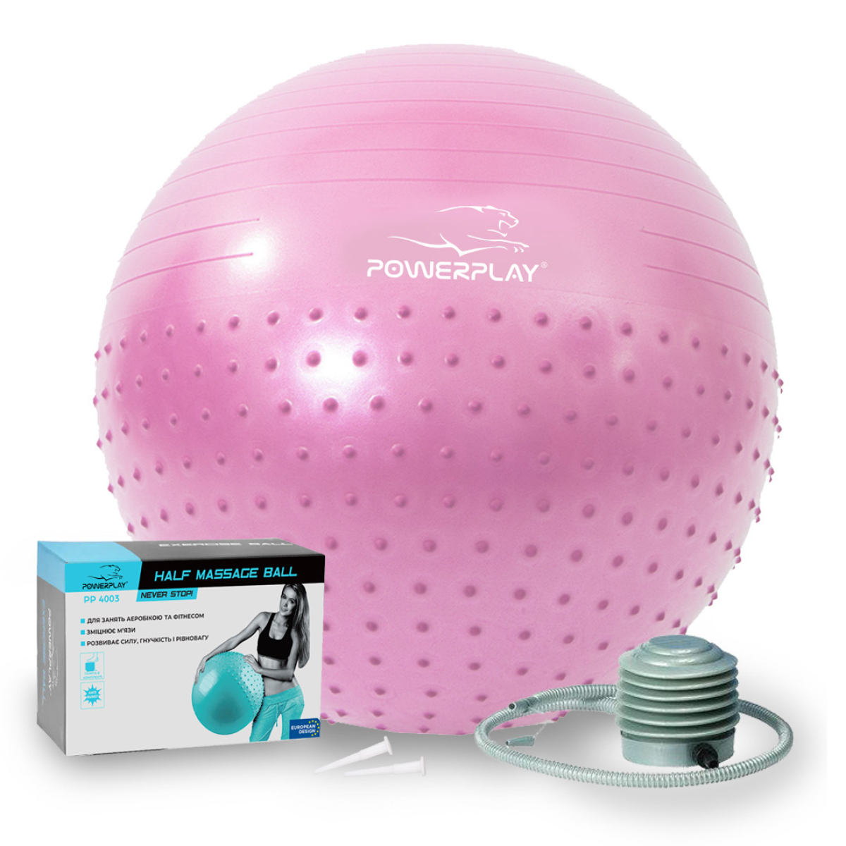 На м“ячі PowerPlay ви можете сидіти та лежати вільно і безстрашно, переносячи на нього вагу свого тіла. М“яч виготовлений з еластичної гуми, витримує навантаження вагою до 150 кг. У разі випадкового проколу м“яч буде здуватися поступово, в повільному темпі, що ще більше підвищує вашу безпеку під час тренування.
