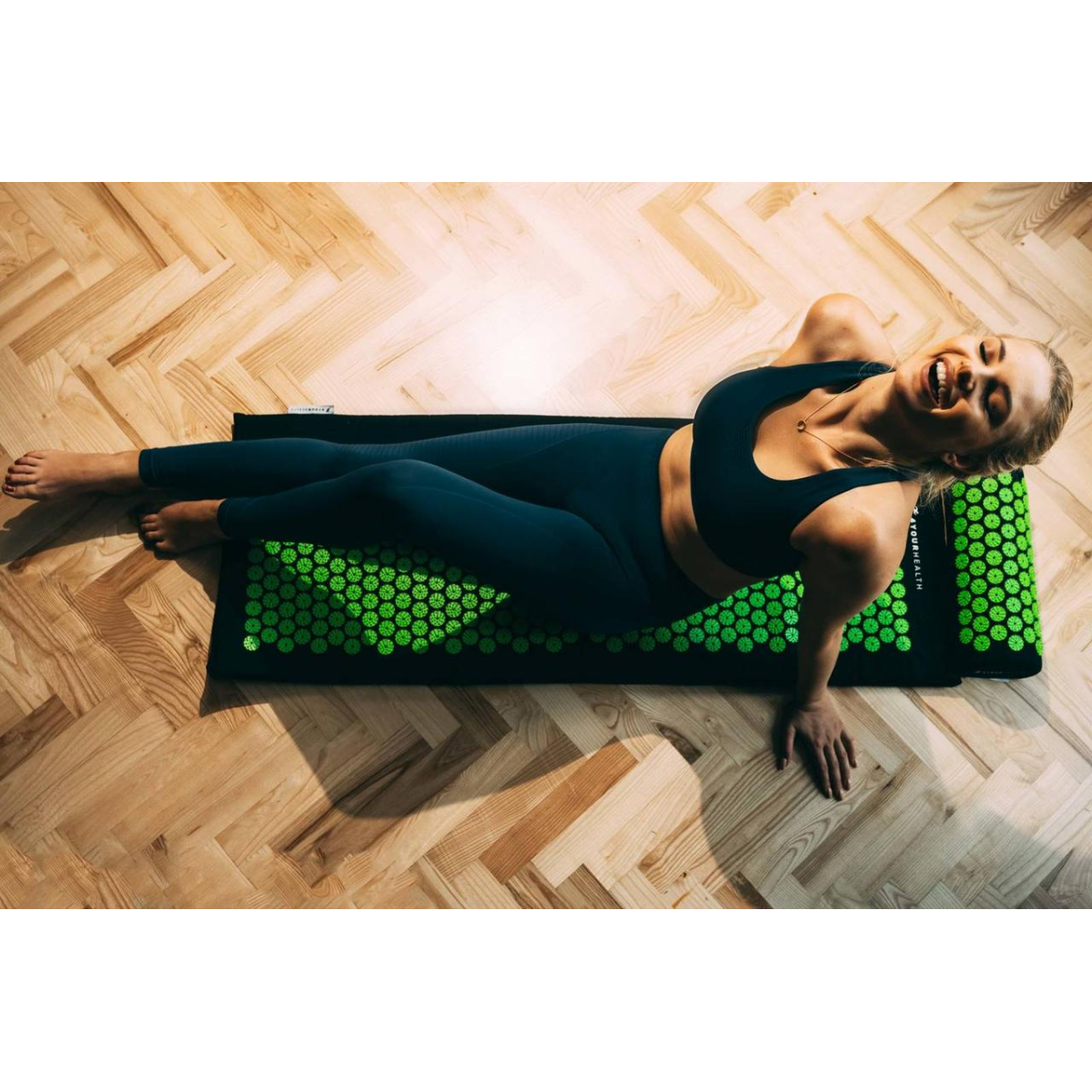 Килимок знімає біль, втому і розслабляє всі частини тіла. Килимок має кілька десятків тисяч шипів, які, натискаючи на окремі ділянки тіла, покращують кровопостачання м“язів. Це у свою чергу призводить до пришвидшення регенерації та виділення ендорфінів, які покращують настрій і позитивно впливають на дію нейропептидів- клітин, завданням яких є зняття болю.