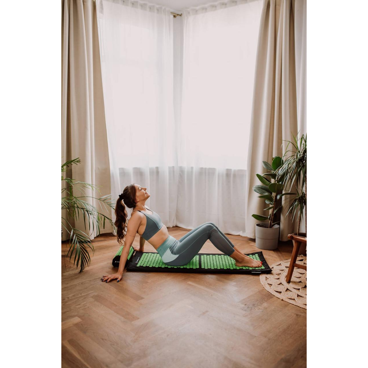 Ми рекомендуємо використовувати килимок щодня, а тривалість використання залежить від індивідуальних потреб і може варіюватися від 5 до 30 хвилин. Килимок також можна використовувати під час роботи сидячи або за кермом автомобіля. Лягай на нього без одягу або у тонкому одязі. Зверніть увагу, що в одязі ви відчуєте близько 50% очікуваного ефекту.
