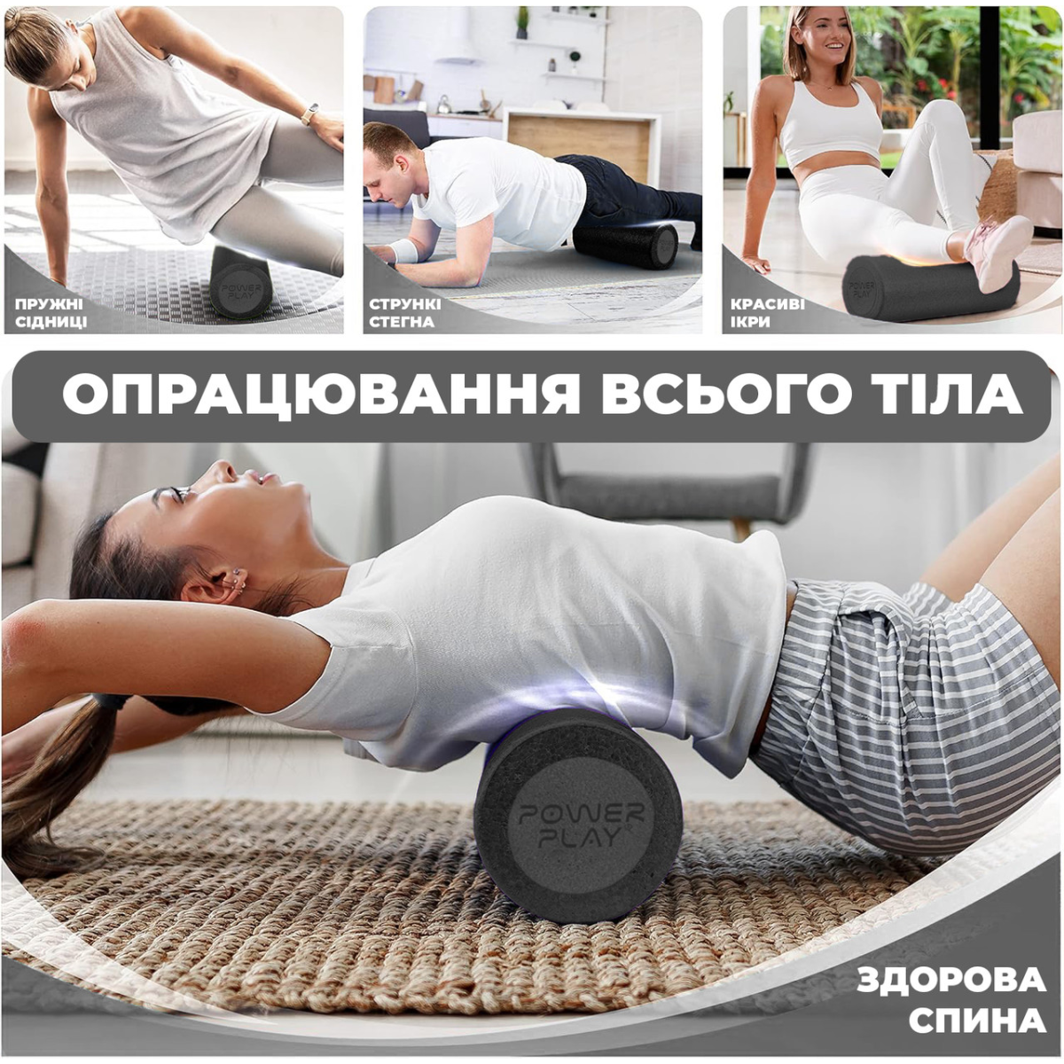 Йога ролер PowerPlay 4021 рекомендується для прес масажу і тренування балансу, що використовується для покращення розтяжки з роз хлопом та гнучкості, тонізує всі групи м“язів.