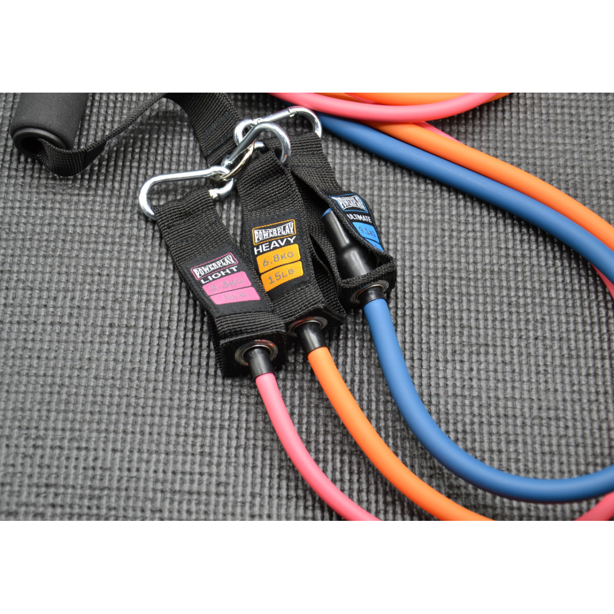 Кожна з трьох гумок, що входять в комплект, створює різне навантаження - в діапазоні від 2,3 до 18,2 кг. Позначення різними кольорами полегшує їх відрізняти. Завдяки регульованій системі кріплення ви визначаєте інтенсивність тренувань. Ви можете займатися фізичними вправами, використовуючи тільки одну обрану гумку або з“єднати декілька разом, тим самим збільшуючи навантаження під час вправ. Одягаючи всі гумки, які входять в комплект, ви можете досягти тиску до 18,2 кілограма!