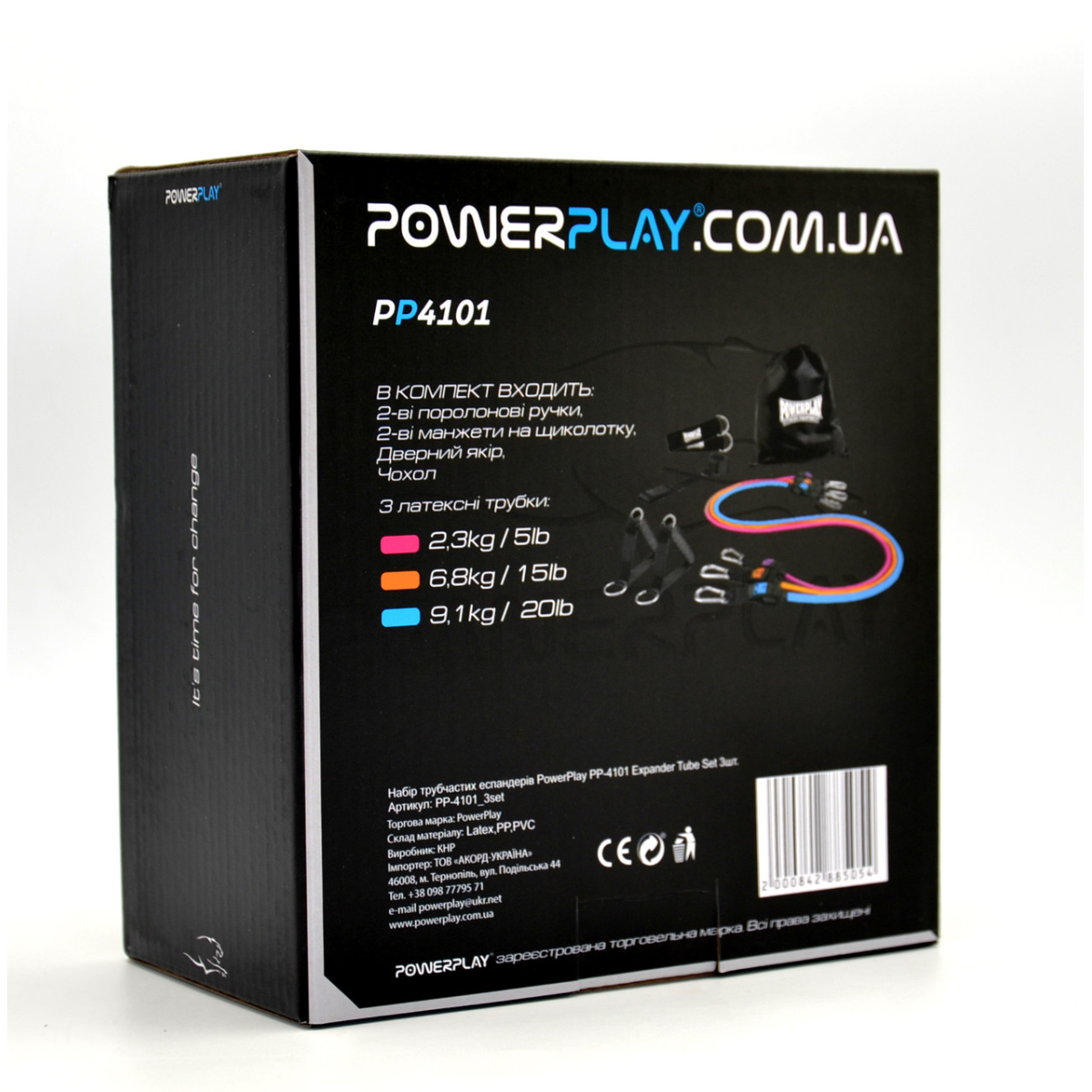 Набір поставляється з 3 латексними опорами, 2 ручками, 2 ременями для щиколоток, 1 анкером для дверей, сумкою для перенесення.