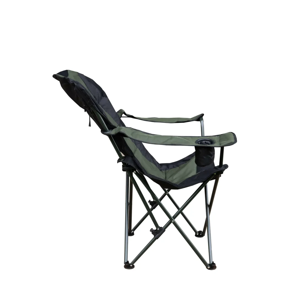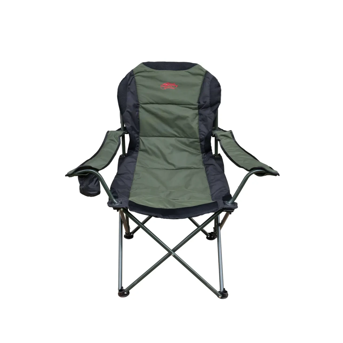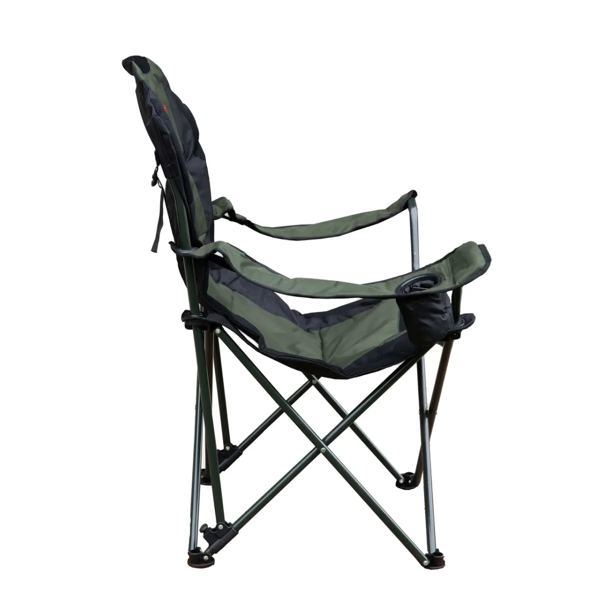 Крісло Tramp Expert TRF-038 Довговічне стійке складне крісло для відпочинку на природі та риболовлі з рамою зі сталі. Сидіння з міцної посиленої тканини, покритої PVC для більшої вологостійкості. Широкі підлокітники з вшитим підсклянником «під праву руку». Особливості: Крісло складається за принципом «тростини» і упаковується в транспортний чохол. Характеристики: Розмір сидіння: 58 х 50 х 44 см Розмір спинки: 58 х 40 см Матеріал: Сталь, Polyester Oxford 600D PVC Вага: 7,5 кг Максимальне навантаження: 120 кг.