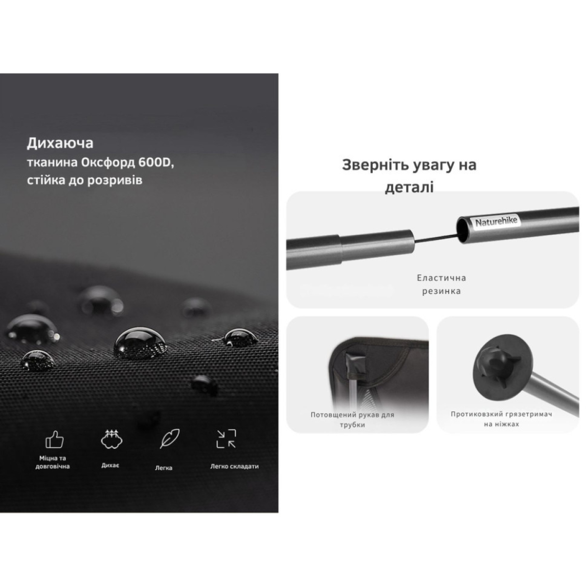 сидіння та спинка з тканини Оксфорд 600D Ripstop;