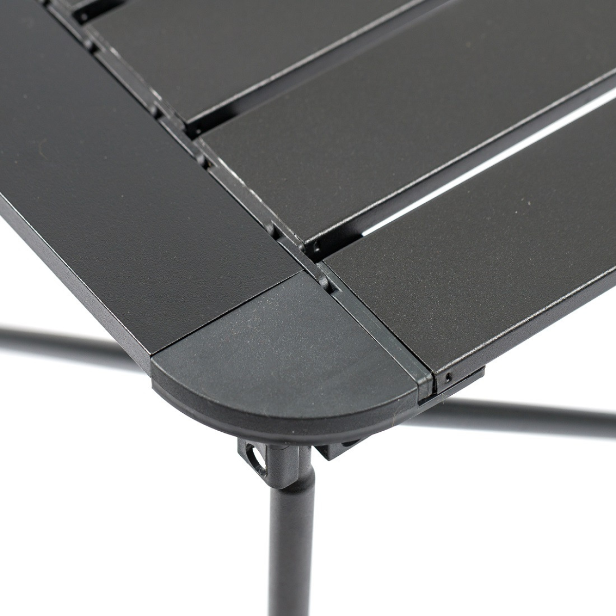 Конструкція міцна і надійна, стіл дуже стійкий, не хитається. Стільниця складається з 9 металевих ламелей, дві бічні панелі виготовлені з алюмінія щоб полегшити вагу столу.