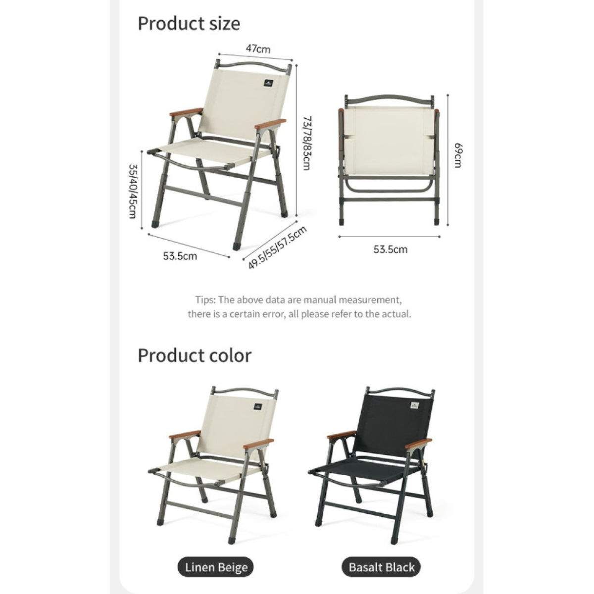 Размер 53.5 х 63 х 73 / 78 / 83 см