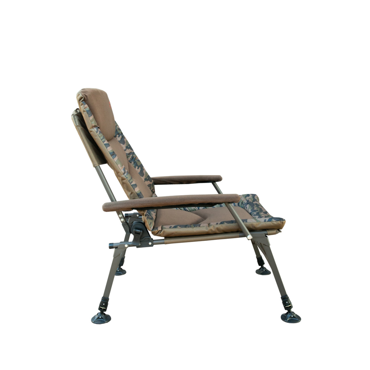 Кресло Tramp Homelice Camo TRF-052 В кемпинговом кресле Tramp Homelikе Camo вы действительно будете чувствовать себя как дома и на берегу реки во время рыбной ловли, и в охотничьем лагере у костра, и в шумном кемпинге на семейных каникулах. Площадь сидение и высота спинки увеличены специально для удобства рослых и крупных людей. Угол наклона сидения можно отрегулировать. Камуфлированная под «осенний лес» ткань сидения отделана большими вставками из нежного микрофлиса. Подлокотники обтянуты съемными чехлами из этого же материала. Чохли легко знімаються для прання і легко кріпляться за допомогою липучок. Надійна стійка сталева рама витримує навантаження до 120 кг, а телескопічні ніжки з упорами збільшеної площі можна відрегулювати під потрібну вам висоту. Особливості: Збільшена площа сидіння і висота спинки. Тканина сидіння зі вставками з мікрофліса Кут нахилу спинки регулюється. Підлокітники в знімних чохлах з мікрофліса. Регульовані по висоті ніжки. Опори ніжок збільшеної площі. Камуфляжна забарвлення. Характеристики: Матеріал: сталь, фліс, поліестер 600D Розмір: 60 х 56,5 х 106/113 см Вага: 5 кг Допустиме навантаження: 120 кг