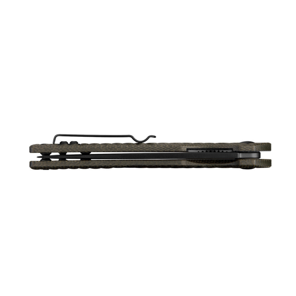 Конструкція відкривається натисканням на плавець фліпера, після чого клинок фіксується за допомогою запірної пластини механізму Liner lock. На руківʼї закріплені дві плашки з мікарти, яка протистоїть пошкодженням при механічному впливі, не тріскається у разі різкої зміни температури та не вбирає неприємні запахи. Рельєфна поверхня руківʼя робить утримання міцнішим і зручнішим, навіть якщо ви носите щільні рукавички.