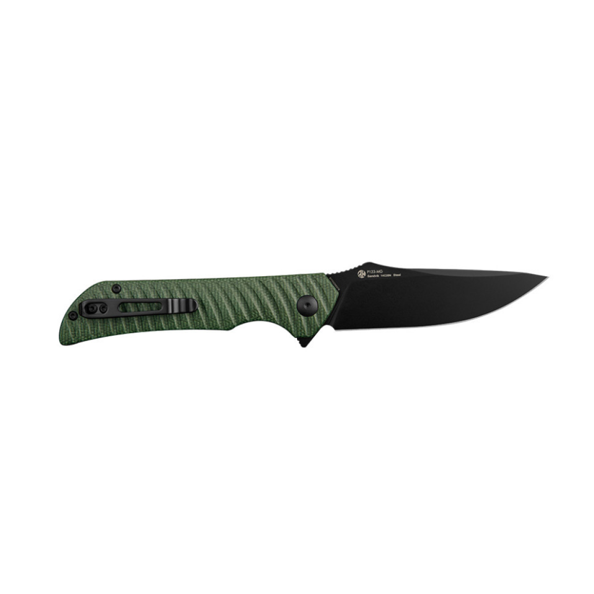 Ніж миттєво відкривається одним натисканням на фліпер і фіксується у відкритому положенні з характерним клацанням. Руківʼя з глибокою виїмкою під палець сприяє міцному утриманню за будь-яких умов, навіть якщо ви полюбляєте носити щільні рукавички. Цьому також сприяє рельєфна поверхня накладок з мікарти, міцного композиту, що демонструє стійкість до ударів та впливу різких температурних змін.