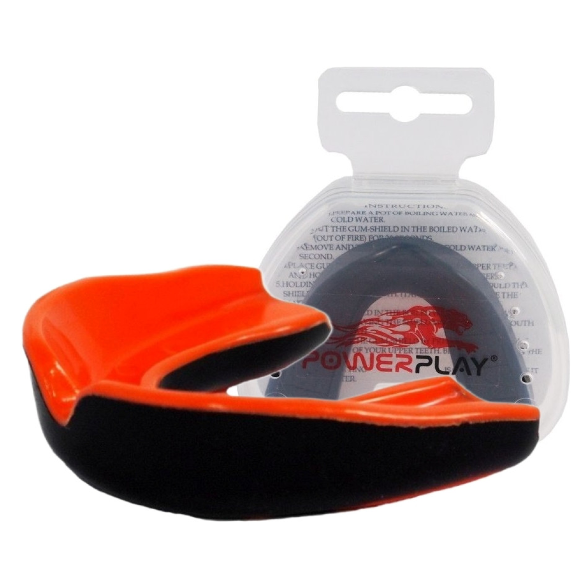 Капа боксерська PowerPlay 3315 SR доросла (вік 11+) чорн-помаранчева зі смаком лемону