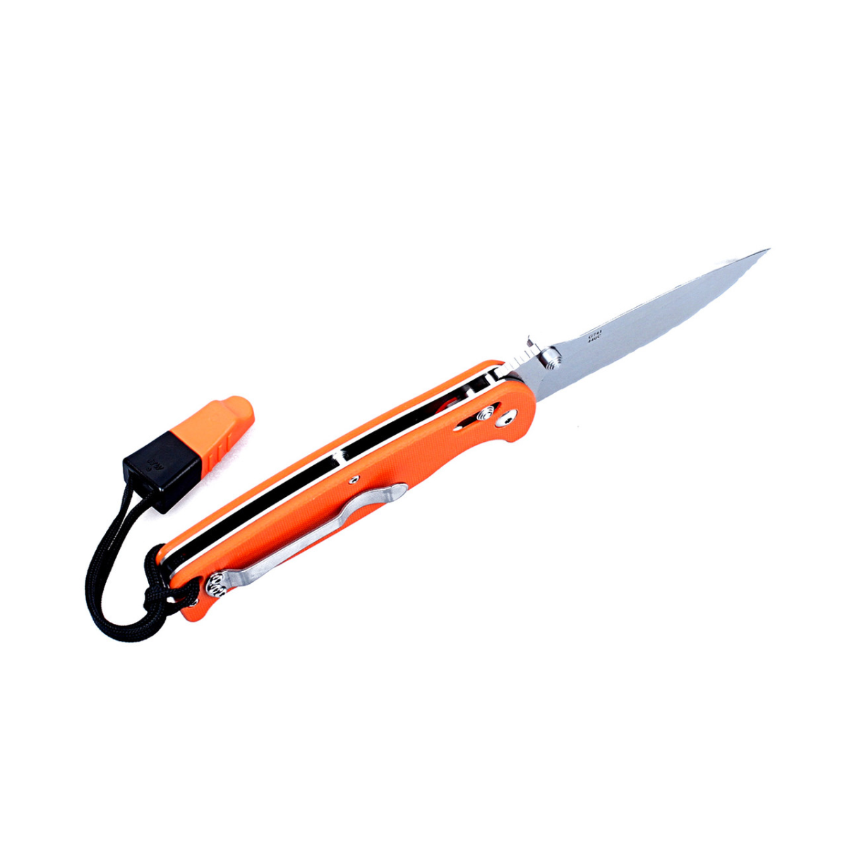 Рукоятка клинка одночасно легка і міцна. Вона зроблена з пластику G10. Покупці можуть вибрати з трьох варіантів забарвлення: чорний, зеленої та помаранчевої. Стиль оформлення — єдиний. Це дві накладки з шорсткою поверхнею, прикручені до сталевій основі. На рукоятці розміщена притискна кліпса темляк-мотузочок, до якого приєднаний свисток.