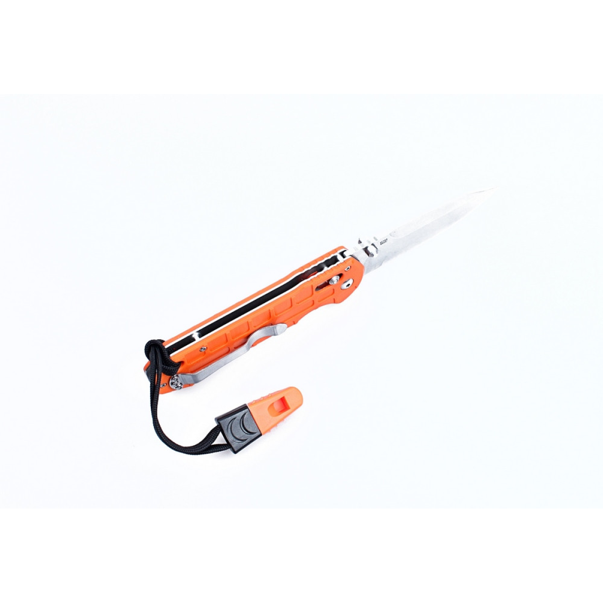 Ну а бонусом моделі Ganzo G7452P є наявність ремінця на руку, продеваемого в рукоятку, і свистка. Останній, може використовуватися для сигналів під час туману або в інших умовах поганої видимості.
