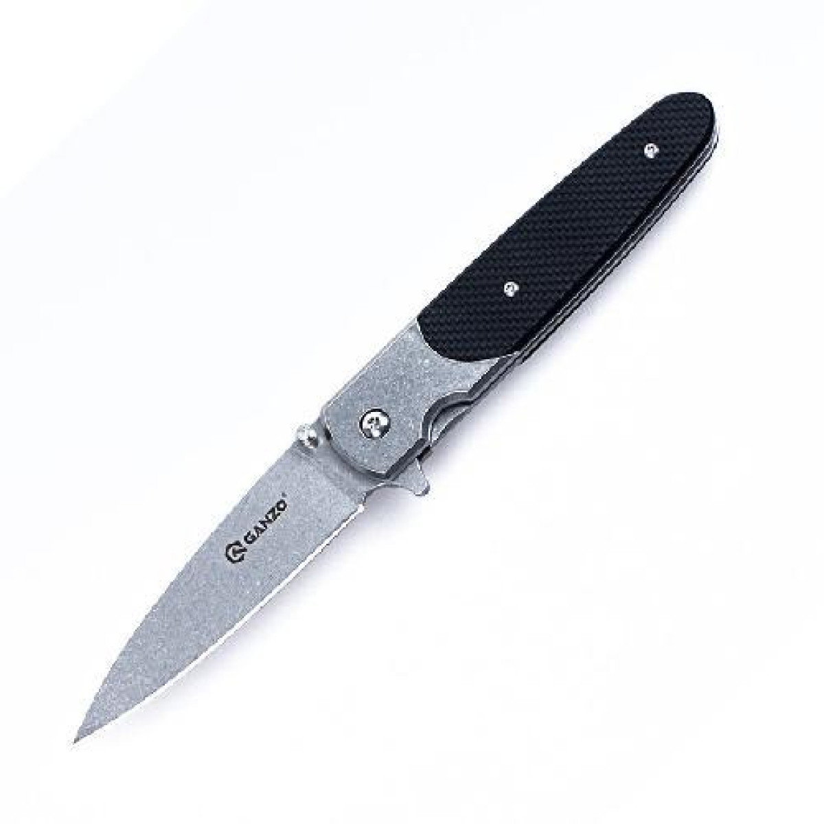 Заточене лезо ножа гладко. Такий тип заточення називається plain і підходить практично для будь-якої роботи з різними матеріалами (особливо — з однорідною структурою). Гострий кінчик дозволяє колоти, коли це необхідно. Модель Ganzo G743-2 відрізняється тим, що клинок практично матовий і оброблений методом Stonewash. Він відображає тільки прямі сонячні промені і на такій поверхні менше помітні подряпини.