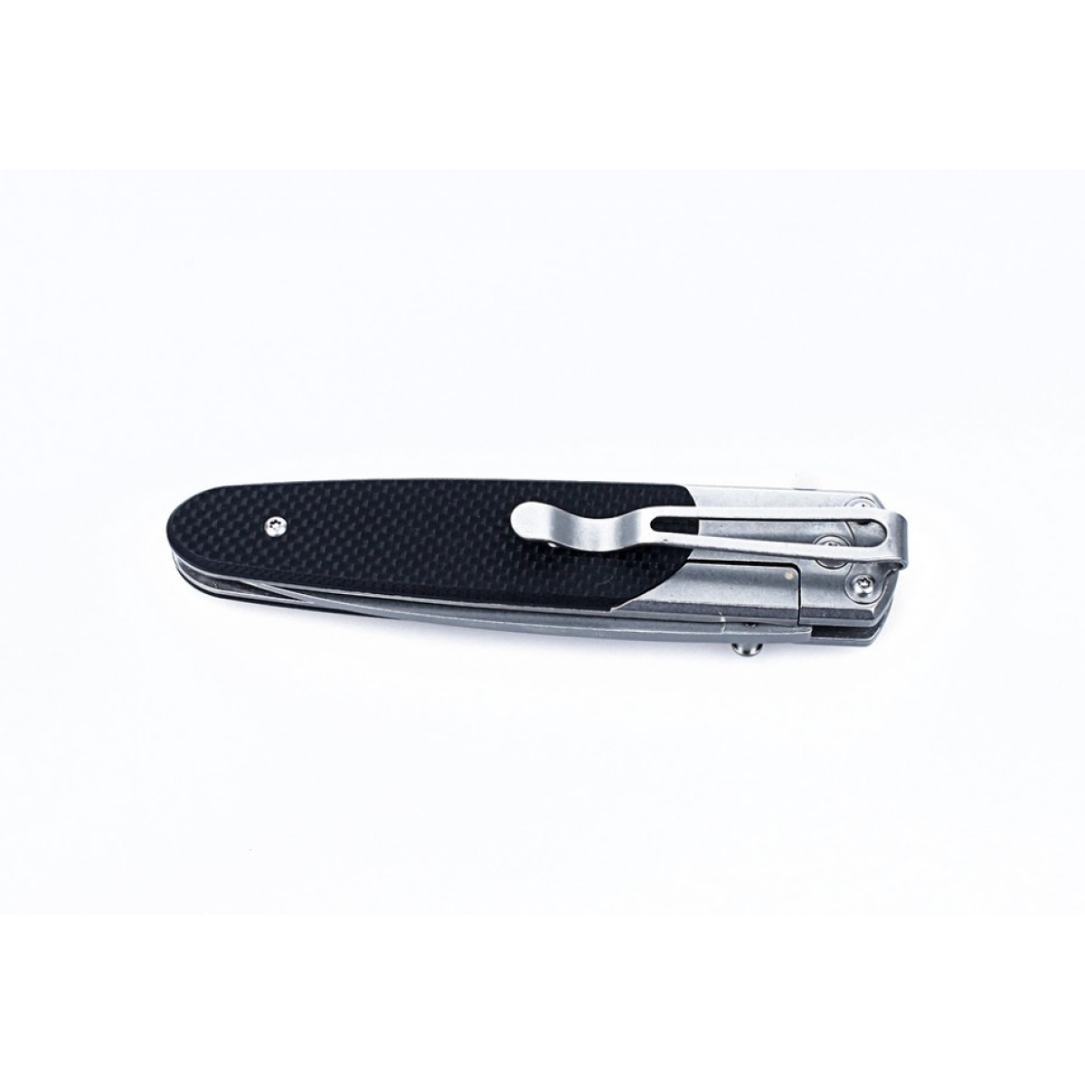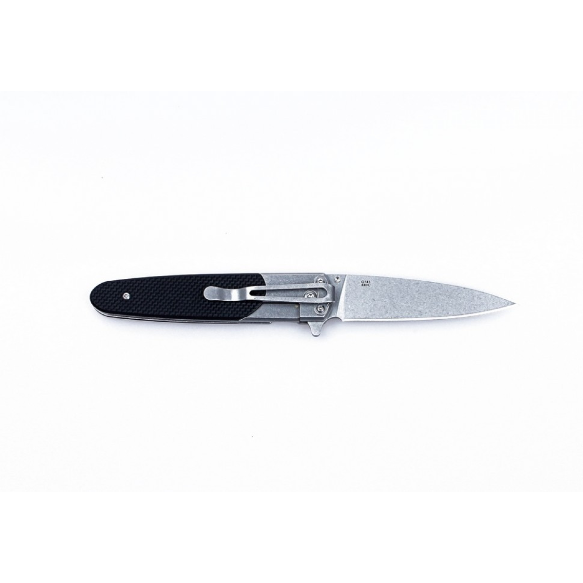 Форма рукоятки в моделі G743-2 дуже лаконічна. Знизу і зверху вона рівна, а зовнішній торець акуратно закруглений. Ближче до клинку частина рукоятки зроблена із сталі і відшліфована тим же методом, що і клинок. До цієї металевої частини кріпиться і кліпса, що служить додатковою мірою фіксації ножа, коли він повинен залишатися в зоні доступності під час поїздок власника ножа на природу.