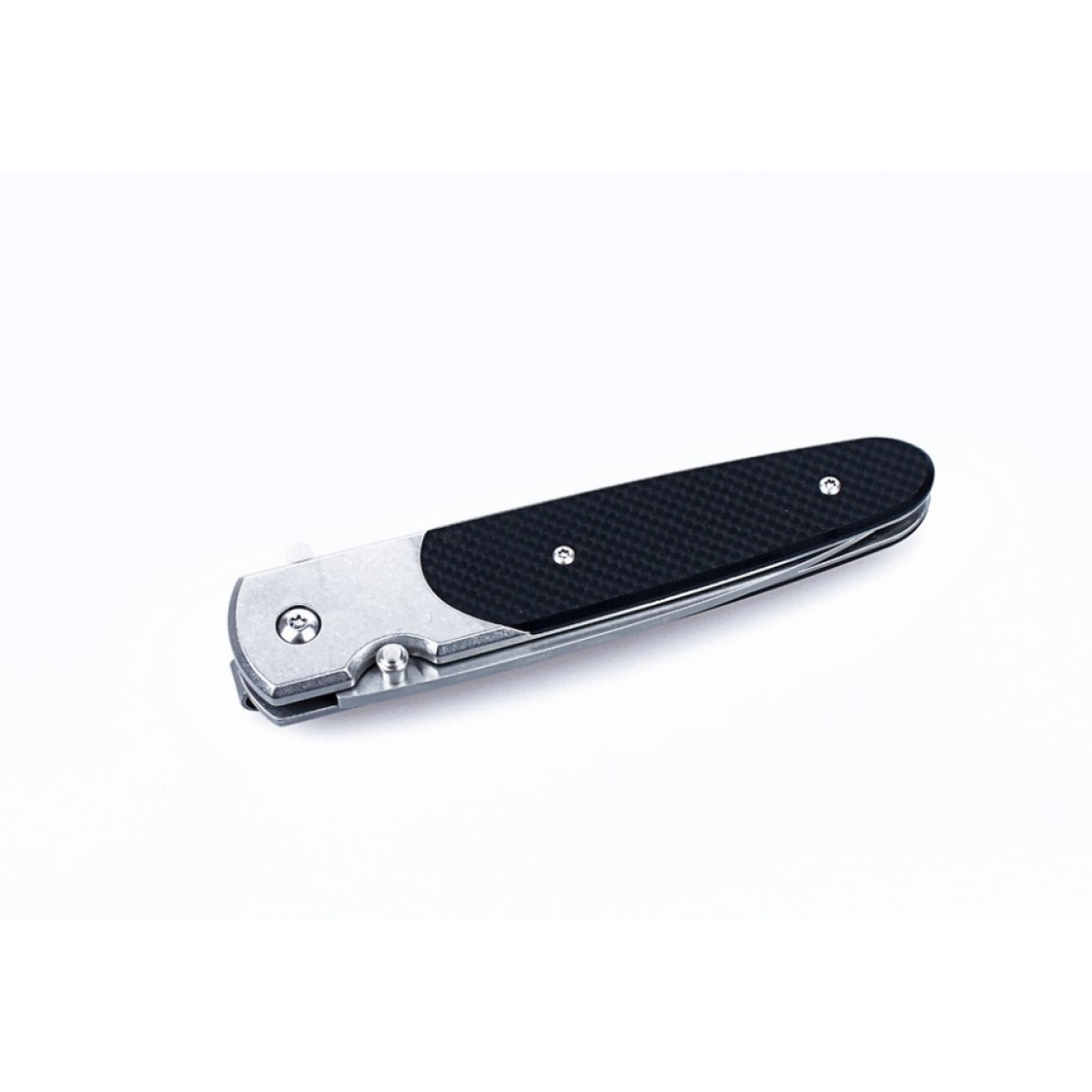 Форма рукоятки в моделі G743-2 дуже лаконічна. Знизу і зверху вона рівна, а зовнішній торець акуратно закруглений. Ближче до клинку частина рукоятки зроблена із сталі і відшліфована тим же методом, що і клинок. До цієї металевої частини кріпиться і кліпса, що служить додатковою мірою фіксації ножа, коли він повинен залишатися в зоні доступності під час поїздок власника ножа на природу.