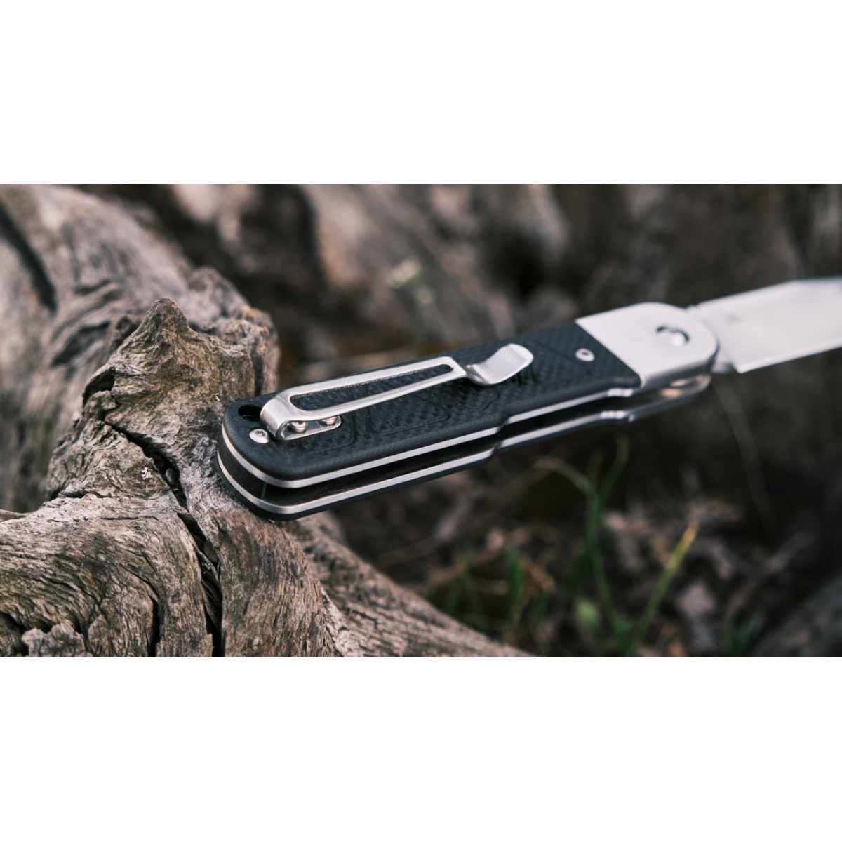 Клинок із профілем clip point має характерне скошення обуха до вістря, що формує тонке вістря. Це підвищує зручність використання інструмента не тільки в різальних, але й в колючих роботах. Товщина обуха досягає 3 мм, підвищуючи стійкість клинка до деформування, що актуально в ситуаціях, коли модель піддається високим навантаженням.