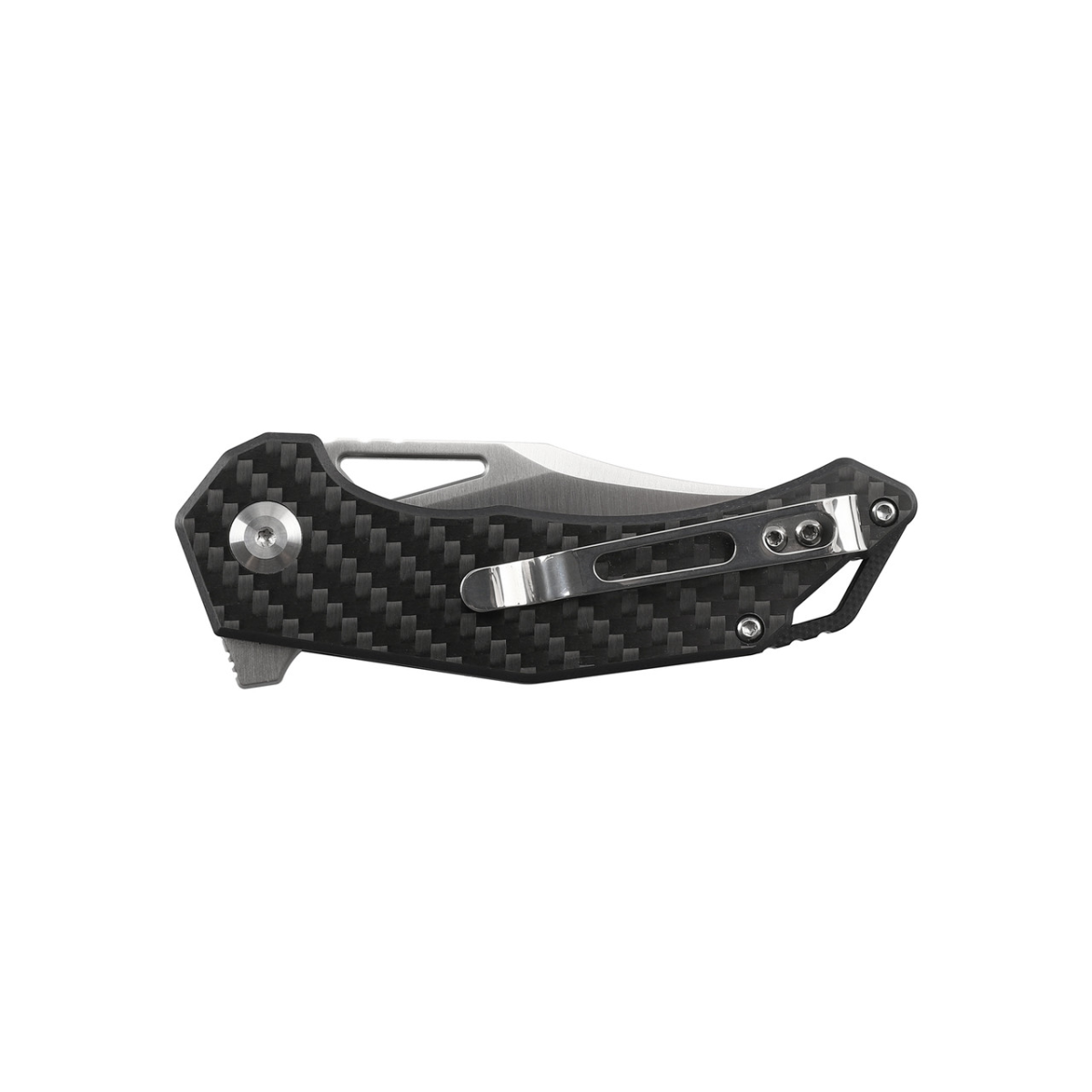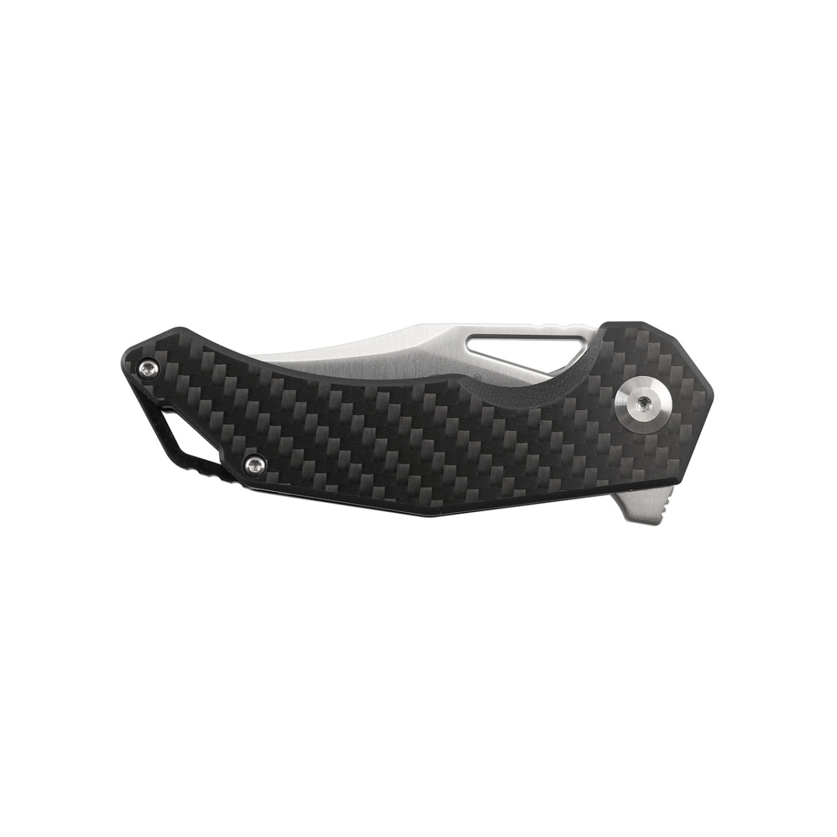 Клинок одержуються як з допомогою незначного отвори під великий палець біля основи, так і за рахунок фліппера з протиковзкими пропилами. Фіксується лезо за рахунок наявності сталевого замку типу Liner-Lock.