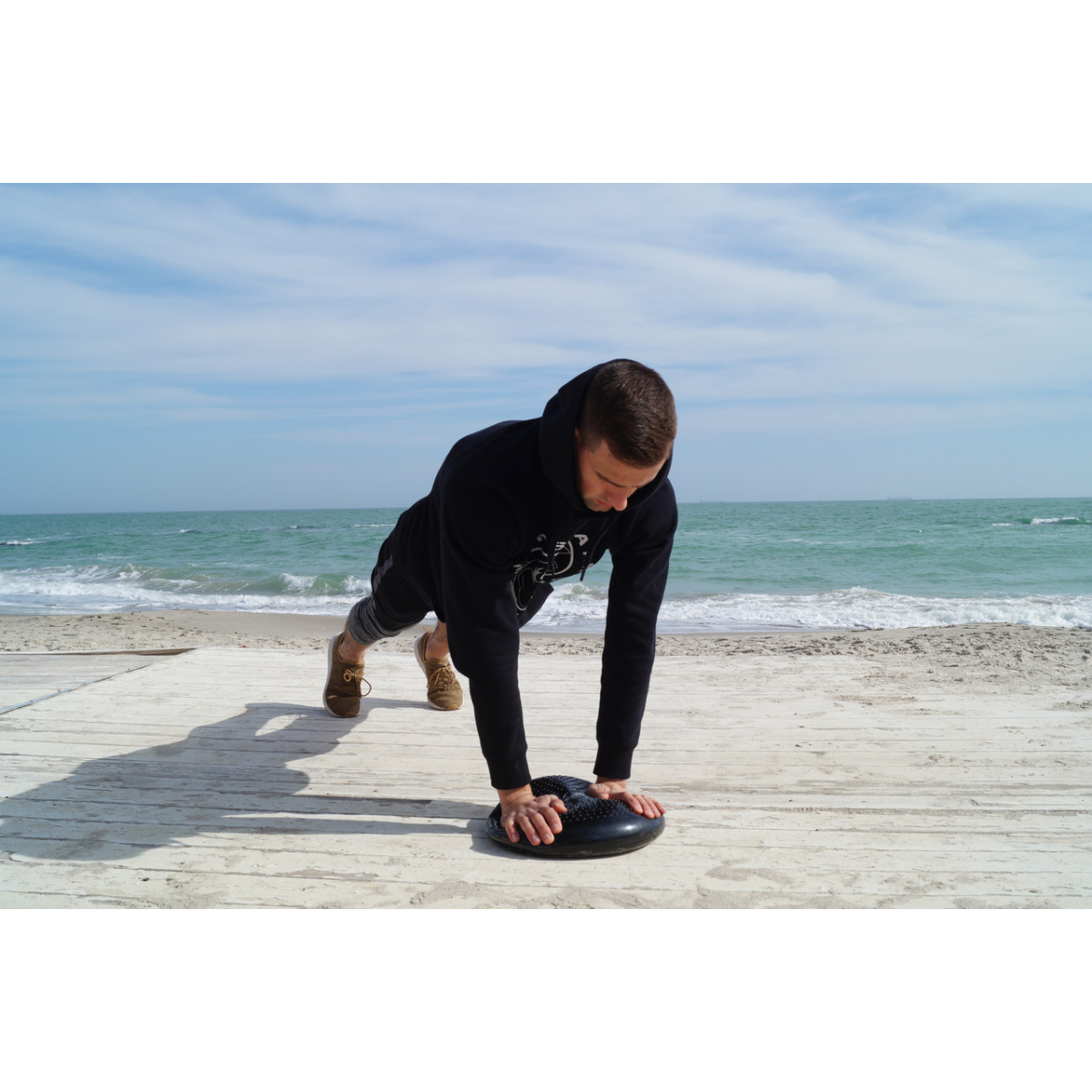 Призначення: для занять фітнесом удома і в тренажерному залі. Якщо ви проводите багато часу, сидячи кожен день, то подушка-балансир є ідеальним тренажером для підбадьорення свого тіла і м“язів навіть під час сидячого положення. Вправи на подушці дозволяють задіяти всі групи м“язів, у тому числі й дрібні м“язи-стабілізатори. Подушка рівноваги покращує тонус і функціональність м“язів–стабілізаторів з допомогою нахилів, поворотів і динамічних вправ на нестабільною поверхні. За допомогою такої подушки виробляється координація, поліпшується реакція і зміцнюється постава. Також подушка-балансир дозволяє пом“якшити м“язові болі, поліпшить кровообіг і самопочуття і тренувати м“язи в домашніх умовах. В цьому її суть: вона створює нестабільну поверхню. На ній можна сидіти або стояти, навіть лежати, і при цьому нестабільність становища змушує працювати дрібні м“язи, які зазвичай у нас не діють і які неможливо накачати в спортзалі. Це м“язи-стабілізатори, які відповідають за поставу і знаходяться безпосередньо біля хребта. Тренувати їх можна тільки на нестійкій поверхні. І така подушка допомагає підтримувати фізичну форму, що називається, не відходячи від каси, тобто робочого столу. Подушку-балансир можна використовувати стоячи, сидячи, лежачи або стоячи на колінах. Чудовий тренажер для тих, хто багато сидить: на роботі, в школі або вдома. Дозволяє робити безліч вправ для зміцнення і формування м“язів. Використовується також для пом“якшення болю в області спини, для поліпшення постави, для стимуляції кровообігу і для масажу ніг. Завдяки круглим гумовим опуклостях подушка-балансир злегка масажують. Активує і зміцнює м“язи живота і боків Надає позитивне дію в боротьбі з целюлітом, покращуючи кровообіг в стегнах. Подушку можна надути за допомогою насоса ( не входить в комплект) . Матеріал: міцна, еластична і протиковзка гума (PVC) Подушка-балансир підходить для всіх віків і будь-якого рівня підготовки. Застосування подушки сидячи: подушку необхідно покласти на стілець і рівно сісти на неї, щоб ноги були разом і ступні повністю торкалися підлоги. Рухи, які Ви будете робити сидячи, активують м“язи, сприяє їх зміцненню, покращують поставу, координацію рухів і почуття рівноваги. Застосування стоячи: рельєф подушки впливає безпосередньо на стопу і підвищує мікроциркуляцію крові в тканинах, зміцнюються м“язи і зв“язки стопи, і також поліпшується постава. Опис: * Покращує рівновагу, стійкість і спритність. * Текстурована частина диска підсилює зчеплення і гарантує комфорт ніг. * Використовується для профілактики травм нижніх кінцівок. * Ступінь надування на вибір. Технічні характеристики: Розміри (см): Діаметр: Ø33 Макс. навантаження (кг): 100