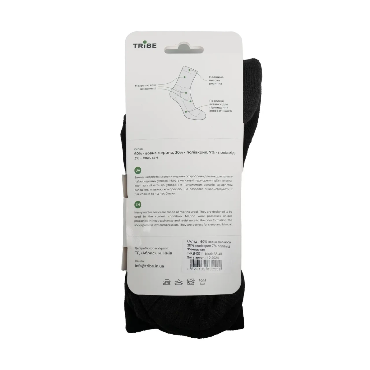Шкарпетки зимові Tribe Merino Winter T-KB-0011-black, 44/46 (T-KB-0011-black-44-46)