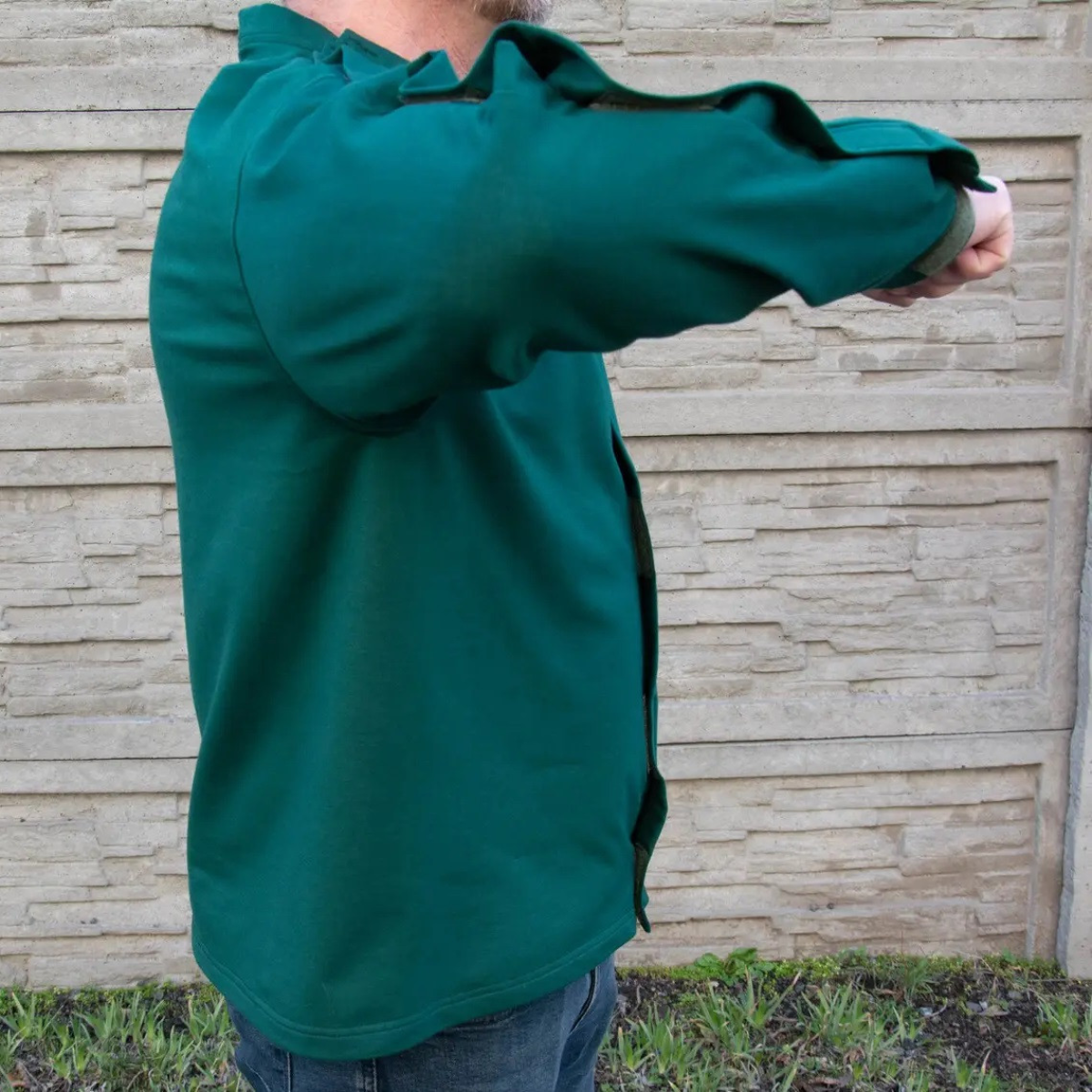 Коли стикаєшся із проблемою зі здоров“ям, це завжди стрес. Слабкість, втома, незахищеність, фізична та моральна пригніченість. Пережити захворювання чи травму завжди важко. Особливу незручність відчувають люди з травмованими кінцівками. Адже їм не один день потрібно перебувати у гіпсі або того гірше в апараті Ілізарова. Банальна щоденна потреба перетворюється на тортури. Адже одягнутися дуже не просто, саме з цією метою використовуються адаптовний одяг. Зручні застібки-фіксатори по всій довжині допомагають швидко і безболісно одягнути чи роздягнути пацієнта. Повірте, у цій ситуації та в цей період життя, це необхідна річ! По всій довжині рукавів та плечей застібки з якісної липучки, для швидкого доступу до будь якої частини тіла. Ширина рукавів регулюється липучкою. Тканина м“яка дихаюча, гіпоалергенна. Матеріал: бавовняна двонитка; Колір: темно зелений; Розмір: 54.