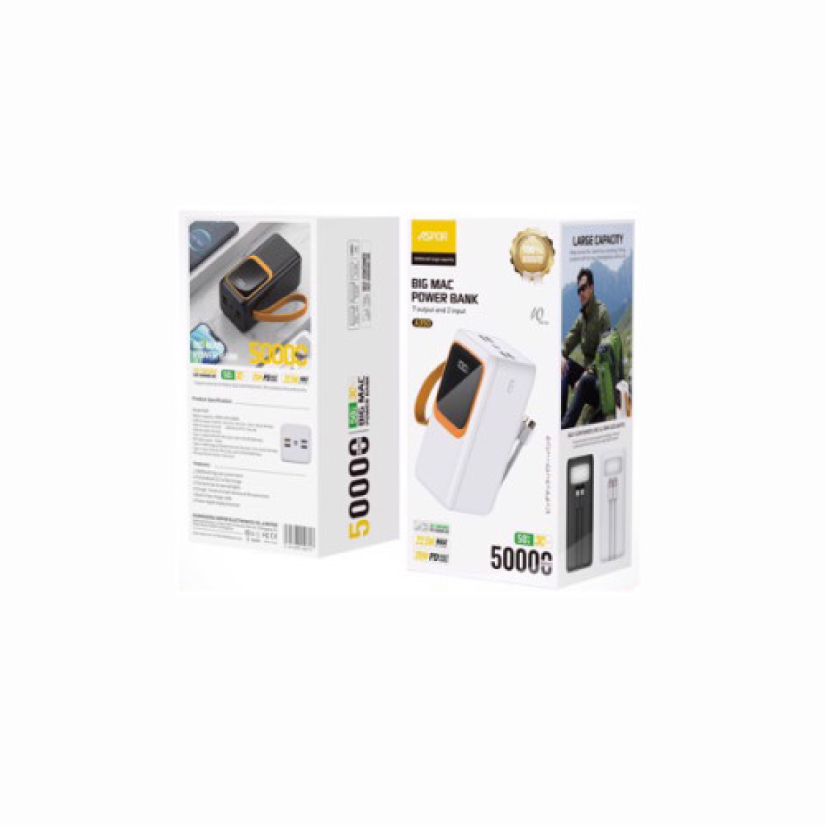 Aspor A350 — це потужний і багатофункціональний повербанк ємністю 50000 мА·год, створений для тих, хто потребує надійного джерела енергії в дорозі, подорожі або в екстремальних умовах. Цей пристрій забезпечує тривалу автономну роботу ваших гаджетів — від смартфонів і планшетів до ноутбуків і портативної техніки. Основні характеристики: Ємність: 50000 мА·год Вхід IPX: 5V⎓3A / 9V⎓2A / 12V⎓1.67A Вхід Type-C: 5V⎓3A / 9V⎓2.22A / 12V⎓1.67A (PD 20W Max) Вихід IPX Cable: 5V⎓2A Вихід Type-C Cable: 4.5V⎓5A / 5V⎓4.5A / 9V⎓2A / 12V⎓1.5A (22.5W Max) Вихід Type-C: 5V⎓3A / 9V⎓2.22A / 12V⎓1.67A (PD 20W Max) Вихід USB-A1: 4.5V⎓5A / 5V⎓4.5A / 9V⎓2A / 12V⎓1.5A (22.5W Max) Виходи USB-A2, A3, A4: 5V⎓2A Загальна потужність: до 22.5W Особливості моделі: 7 портів для підключення — 4 USB, Type-C, Lightning (IPX) і вбудовані кабелі. Підтримка швидкого заряджання PD 20W / QC 3.0 / SCP 22.5W, що дає змогу ефективно заряджати навіть великі пристрої. Гігантська ємність 50000 мА·год — достатньо, щоб до 10 разів зарядити смартфон або кілька разів планшет. Багаторівневий захист: від перегріву, короткого замикання, перенапруги та перезаряду. Зручність у транспортуванні: компактний корпус і зручний ремінець для перенесення. Індикатор заряду: LED-дисплей відображає залишок енергії в режимі реального часу. Вбудовані кабелі: Зручні вбудовані кабелі (Lightning, Type-C) для заряджання пристроїв без необхідності носити додаткові дроти. Переваги: Універсальна сумісність з усіма популярними брендами. Можливість одночасної зарядки кількох пристроїв. Швидке заряджання самого повербанка (рекомендовано адаптер від 30W і вище). Корпус із ударостійкого пластику, стійкий до подряпин і пошкоджень. Оптимальна енергоефективність і безпечна експлуатація. Зручність — вбудовані кабелі, індикатор заряду, компактні розміри. Надійність — сертифікації CE, FCC, IEC, PSE. Aspor A350 50000mAh (22.5W) — це не просто повербанк, а потужна станція енергії, яка гарантує, що ваші пристрої залишаться зарядженими за будь-яких умов. Надійність, багатофункціональність і висока швидкість заряджання — усе, що потрібно для сучасного користувача.