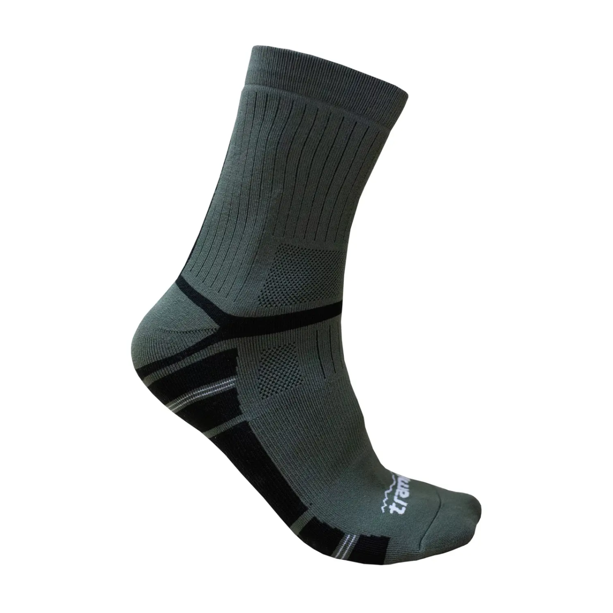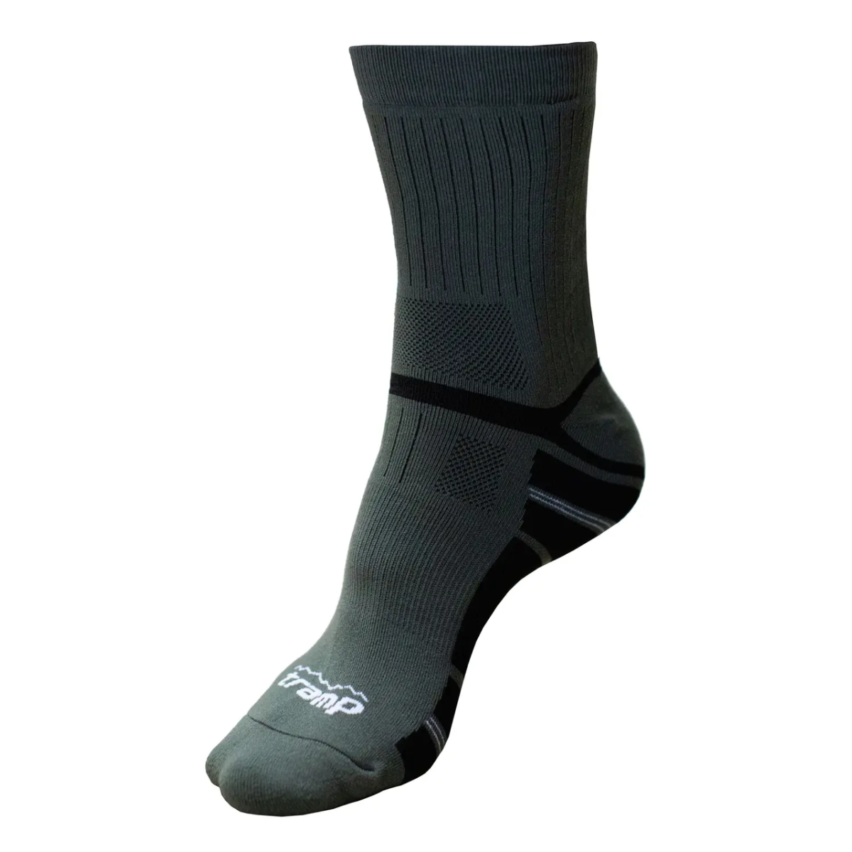 Зимові шкарпетки Tramp розроблено для активного використання у холодний період року з туристичним або тактичним взуттям з мембраною та без. Мають різні функціональні зони для вентиляції та фіксації на нозі. Захищають ноги від натирань та ефективно відводять вологу під час великих фізичних навантажень. Склад: 75% поліпропілен, 22% поліамід, 3% еластан. Особливості: – махра по всій шкарпетці; – подвійна резинка для уникнення сповзання; – додаткова резинка на стопі; – демпферна зона у місцях найбільшого тиску для уникнення натирань – стопа та п’ятка; – потовщення у зоні пальців. Призначення: використання з тактичним взуттям, походи у гори, подорожі. Розмірна сітка: 38-40 – 25 см; 41-43 – 27 см; 44-46 — 29 см. Виготовлено в Україні. Країна походження сировини: Чехія.