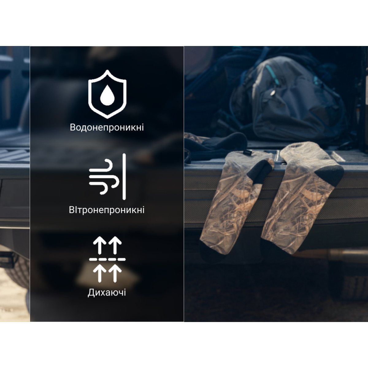 Опис водонепроникних шкарпеток Dexshell StormBLOK 2.0 Socks, камуфляж M (39-42): Шкарпетки DexShell StormBLOK 2.0 — це оновлена версія базової серії, розробленої спеціально для мисливців, рибалок та поціновувачів активного відпочинку на природі у весняно-осінній період. У новій моделі використано камуфляж Realtree® MAX-7, який імітує природні елементи: бруд, гниле листя, очерет, віддзеркалення у воді. Це дозволяє максимально природно зливатись із навколишнім середовищем як на сухих, так і на вологих ландшафтах. Тришаровий матеріал шкарпеток гарантує захист ніг від більшості зовнішніх факторів: вологи, вітру та холоду. Така функціональність забезпечується завдяки мембрані Porelle®, яка блокує вологу зовні, не дає їй проникнути в нижній шар і одночасно не порушує повітропроникні властивості тканини. Це особливо важливо під час високої активності — ноги залишаються сухими під час опадів та у разі активного потовиділення при фізичних навантаженнях. Зовнішній шар з поліестеру, поліаміду та еластану захищає вироби від механічних пошкоджень. Гладка поверхня відштовхує забруднення, а включення еластичних ниток підвищує якість посадки. У внутрішньому шарі використані перероблені волокна Repreve®, які на дотик нагадують бавовну. Шар не викликає подразнення шкіри та виконує теплоізоляційну функцію. Застосування волокна Repreve® також підкреслює прагнення бренду DexShell до екологічного виробництва. Шкарпетки StormBLOK 2.0 виготовлені за безшовною технологією Rosso та мають ущільнювальні вставки в п“яті та пальцях для захисту чутливих зон від натирання. Еластичні манжети щільно фіксують шкарпетки на нозі без надмірного стискання, що важливо для збереження циркуляції крові в кінцівках у холодну погоду. Догляд Пріть шкарпетки DexShell у теплій воді до 40°C. Не варто сильно терти або викручувати матеріал — мембрана Porelle® вкрай чутлива до механічного впливу та потребує акуратного поводження. Під час прання рекомендується використовувати м“які мийні засоби або спеціальні засоби для мембранного одягу. Уникайте застосування агресивної хімії. Після прання потрібно акуратно розправити шкарпетки та залишити їх сохнути у горизонтальному положенні. Сушити вироби слід природним способом за кімнатної температури, якомога далі від батарей, обігрівачів та прямих сонячних променів. Особливості: водонепроникні шкарпетки DexShell для полювання, риболовлі, активного відпочинку; колір – камуфляж Realtree® MAX-7; розмір M; сезонність – весна, осінь; тришаровий матеріал з екологічним волокном Repreve®; мембрана Porelle® для захисту ніг від води, холоду, вітру та бруду; виготовлено за безшовною технологією. Склад: Верхній шар: 51% поліестер, 43% поліамід, 6% еластан. Середній шар: мембрана Porelle®. Нижній шар: 75% поліестер, 22% поліамід, 3% еластан.