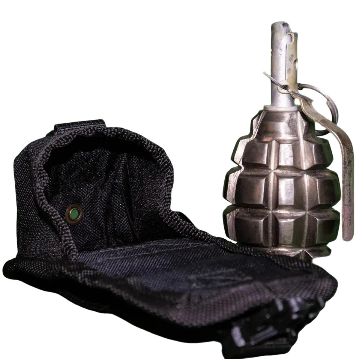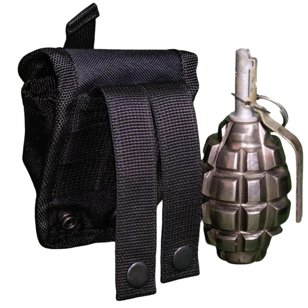 ПІдсумок забезпечує швидкий доступ до гранати за допомогою кришки-клапану на фастексі. Дана модель має систему швидкого скидання. Виготовлений з міцної водовідштовхувальної всесезонної тканини Кордура 1000D. Зручність відкриття підсумка забезпечує петля-подовжувач із зносостійкої нейлонової стропи. Універсальний підходить під марки гранат М67, Ф1,РГД5. Універсальний закритий підсумок використовується для зберігання гранати та схожих за розміром предметів. У бою потрібно бути повністю впевненим у тому, що під рукою є найнеобхідніша зброя і вона не підведе в потрібний момент. Саме тому використовують такий вид зберігання гранат. Це дає впевненість, що граната буде надійно утримуватись у підсумку, поки власник не захоче нею скористатися. Підсумок кріпиться на систему MOLLE за стандартами НАТО, додатково оснащена фіксацією кнопками. Система кріплення Molle виконана із міцної гумки, яка не тягнеться з часом. Характеристики: Розмір: 11х6,5х3,5 см; Тканина: Кордура 1000D; Колір: чорний; Вага: 60 г.
