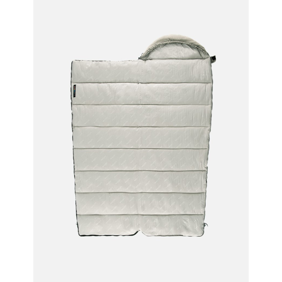 Внутрішня частина має підкладку з бавовни пероподібного типу. Це гіпоалергенний синтетичний матеріал, який не викликатиме дискомфорту для тіла. Зовнішній шар зроблений з поліестеру 210 Т. Дихаючий ефект дозволить почуватися комфортно і не пітніти всередині спальника. Сірий туристичний спальник має вбудований капюшон, що дозволяє захистити голову від вітру та холоду. Це дозволить вам відчувати комфорт навіть під час гірських турів.