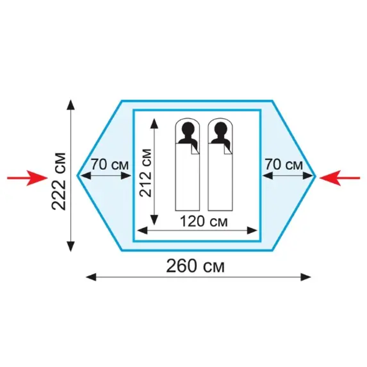 Оригінальна конструкція, дозволяє покращити вітростійкість намету, не збільшуючи його вагу, що дуже важливо в тривалих подорожах.
