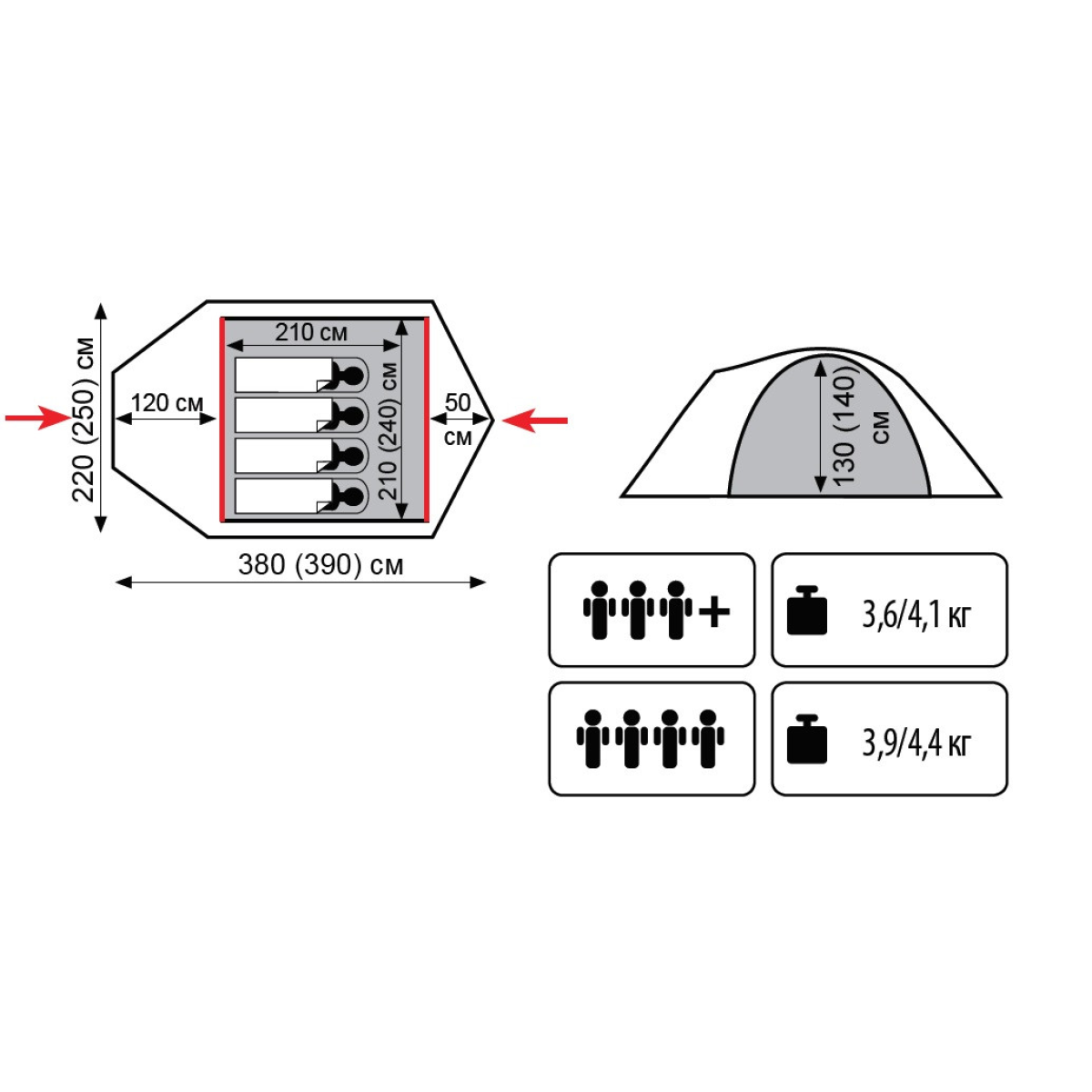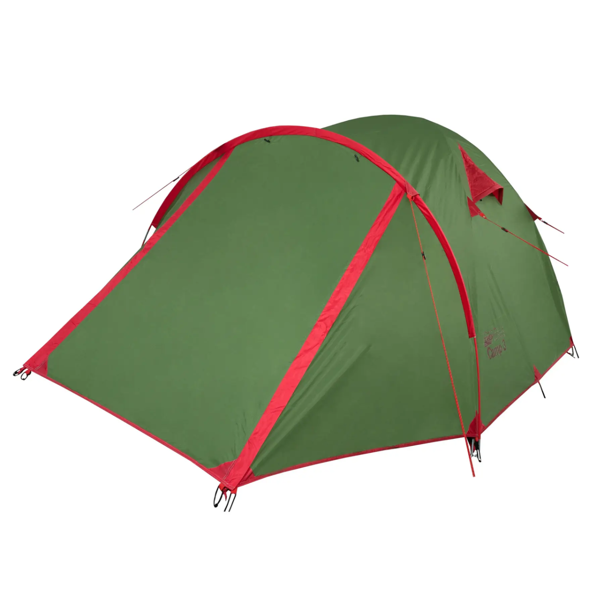 Намет Tramp Lite Camp 3 Тримісний універсальний туристичний намет Tramp Lite CAMP 3 призначений для туристичних походів та відпочинку на природі у весняний, літній та осінній час. Особливості: Двошаровий намет з двома входами Два входи та два тамбури Входи спального відділення продубльовані москітною сіткою Основний тамбур збільшеного розміру Два вентиляційних клапана Всі шви проклеєні Характеристики: Вага: 4,1 кг. Розміри: 220 х 380 х 130 см. Тент: 100% поліестер 75D/190T WR PU 4000 мм. в. ст. Внутрішній намет: 100% дихаючий поліестер Дно: армований терпаулинг 10000 мм в.ст. Каркас: фіберглас 7,9 мм Розмір в упаковці: 22 x 60 x 17 см.