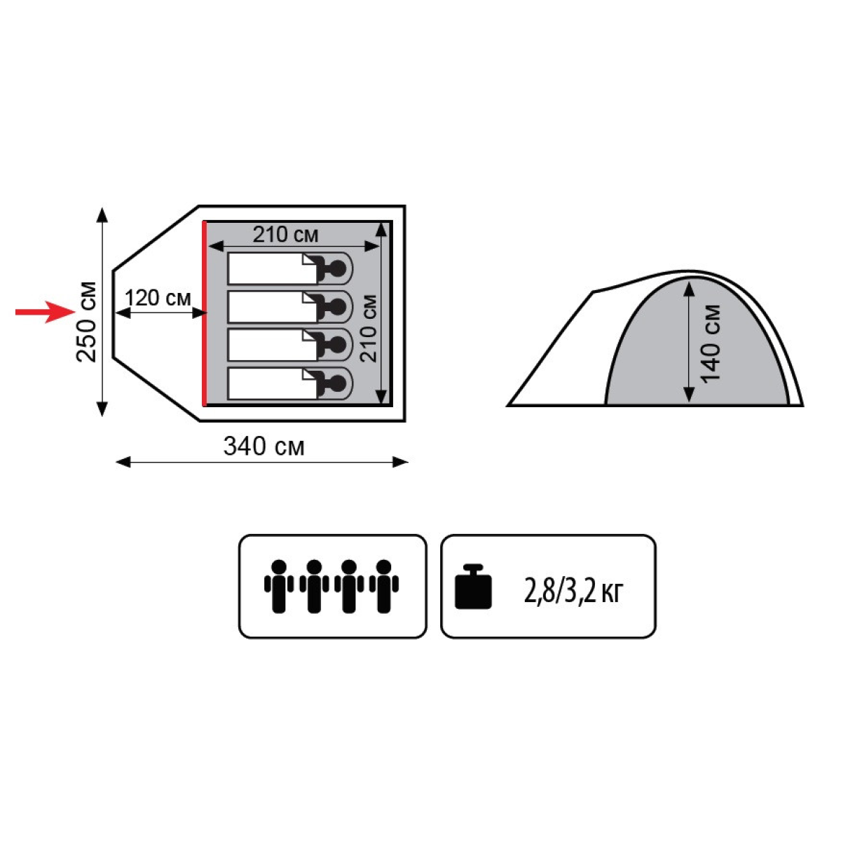Намет туристичний Totem Chinook 4 (v2) зелений (TTT-017) (UTTT-017)