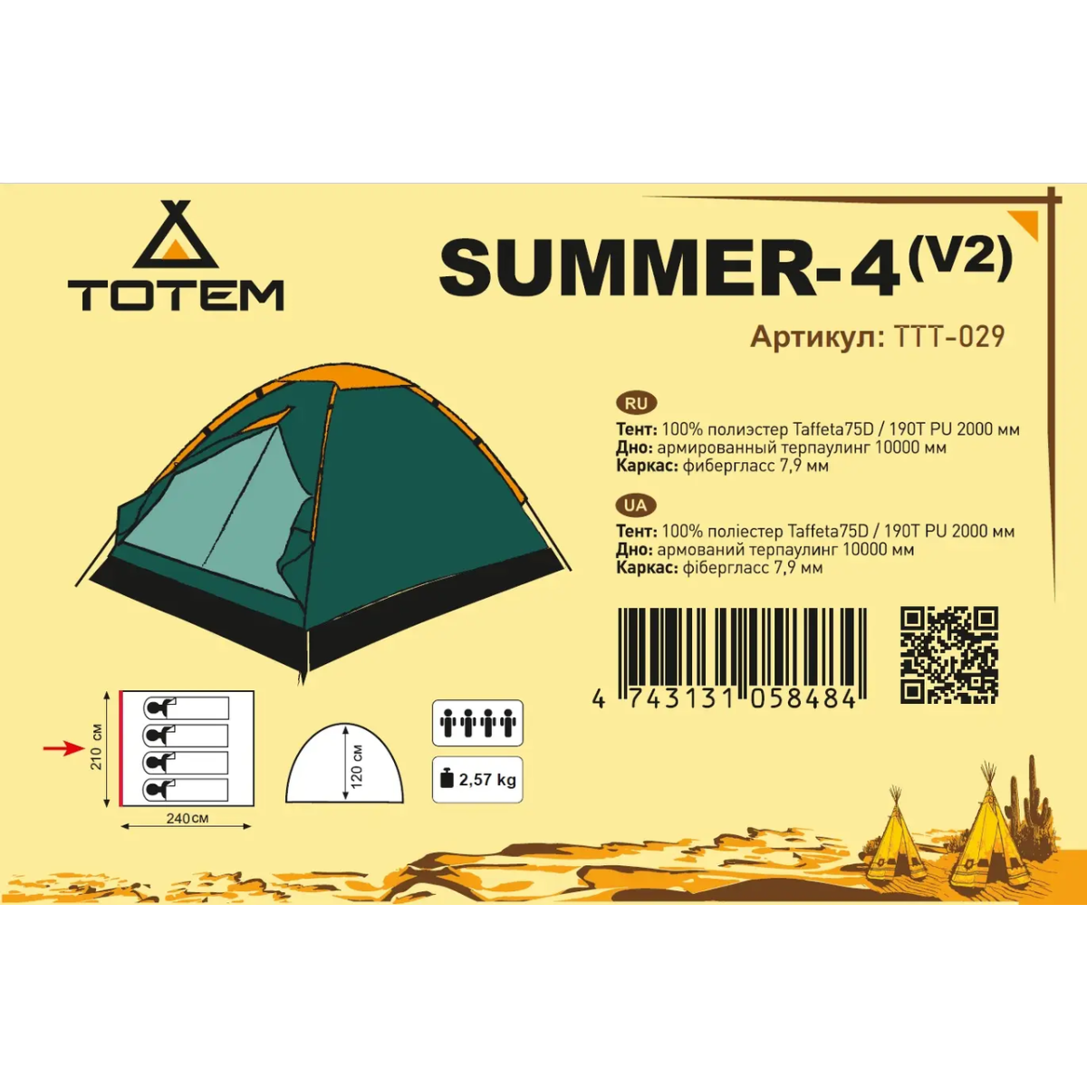 Намет туристичний Totem Summer 4 (v2) одношаровий (TTT-029) (UTTT-029)